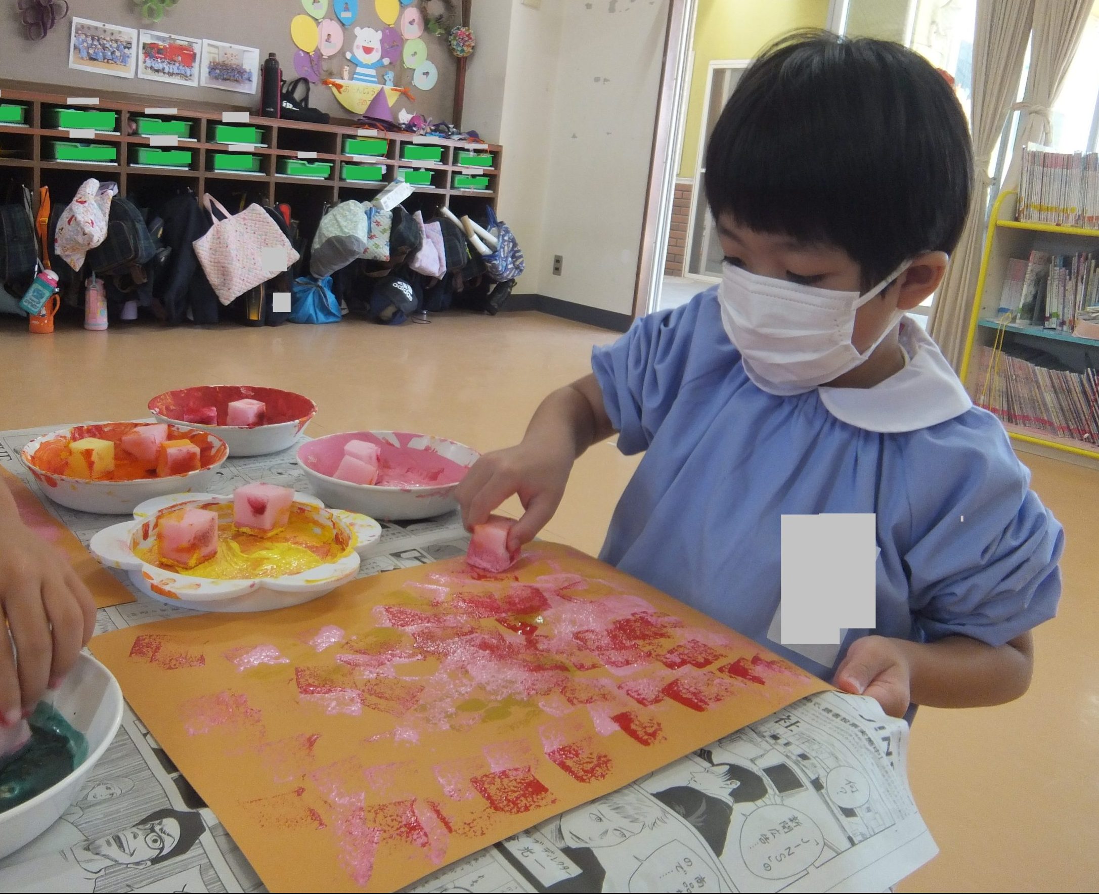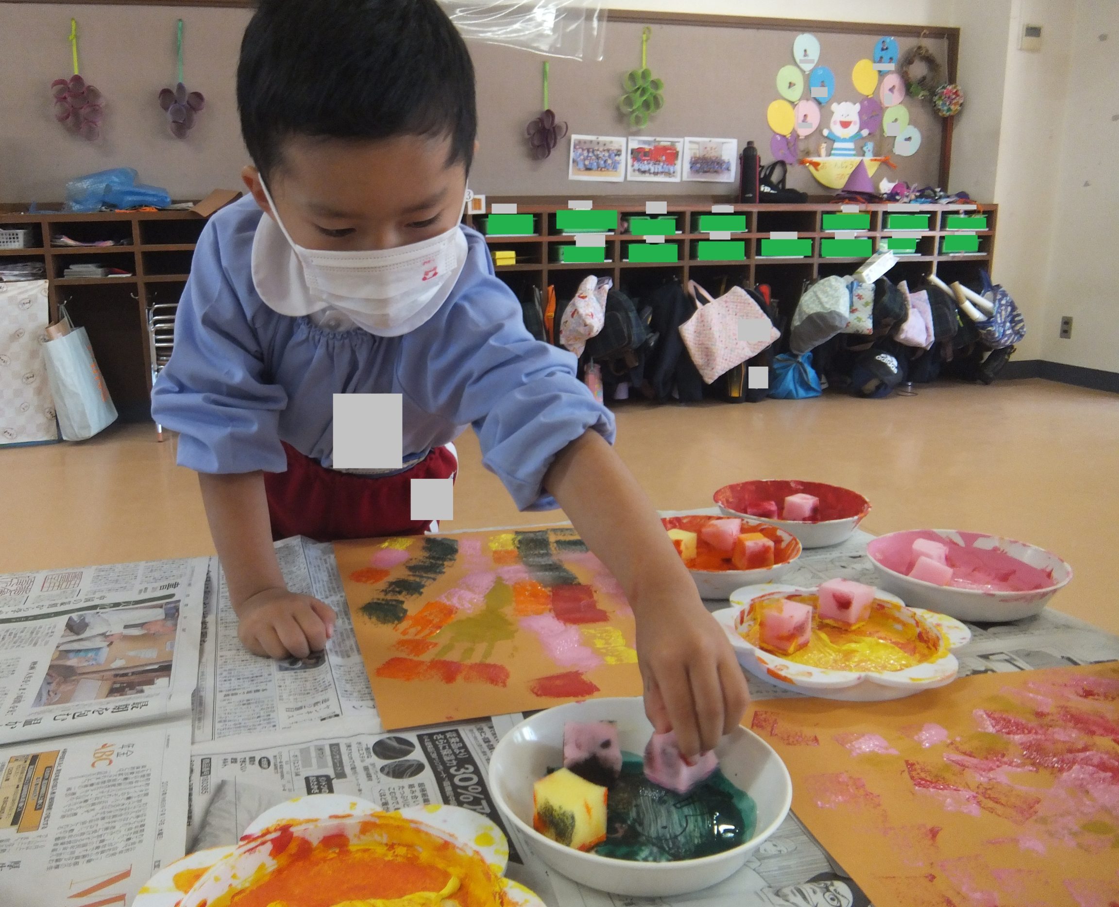 ☆筆やスポンジなどを使い、表現を楽しみながら描いていました✨