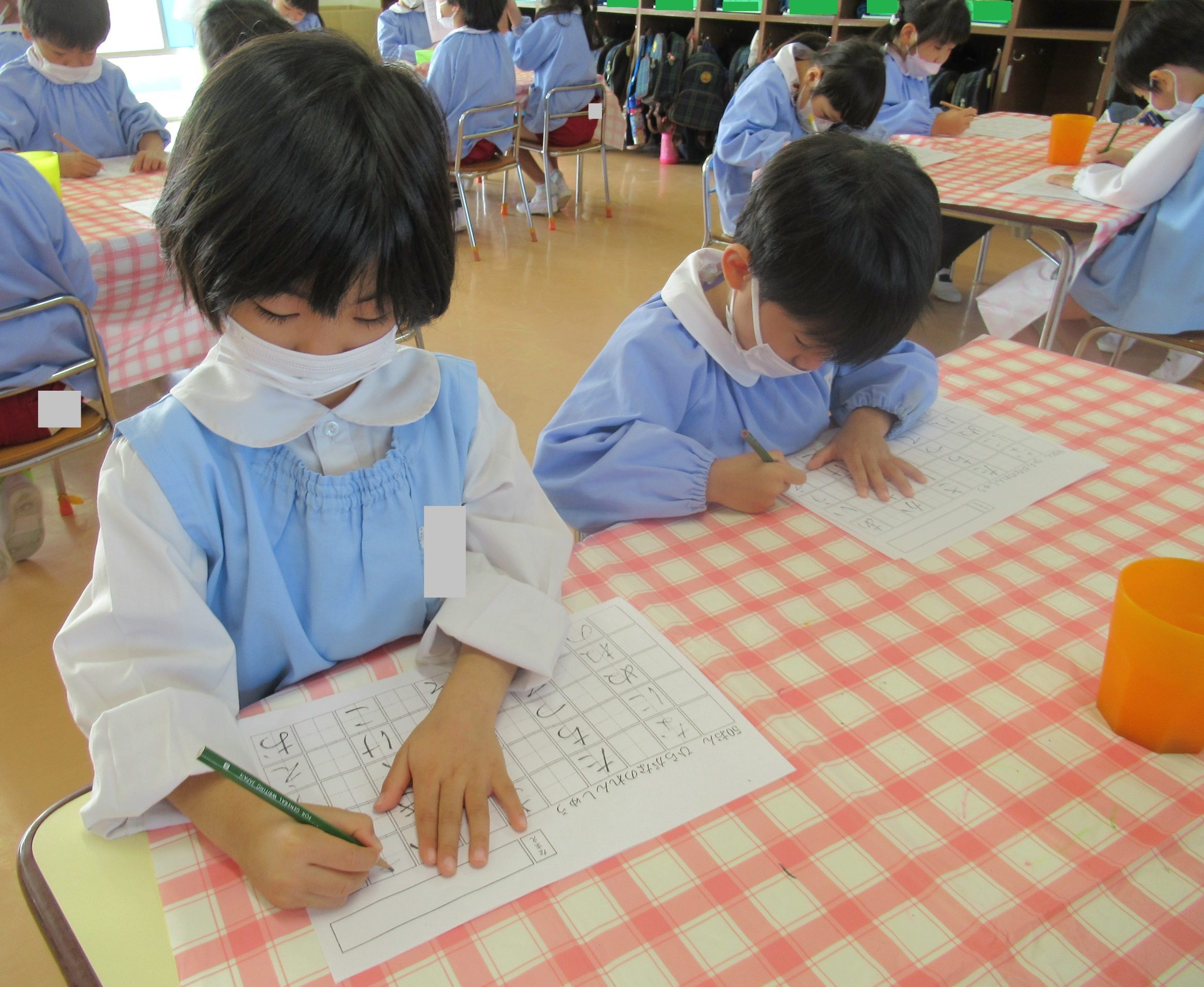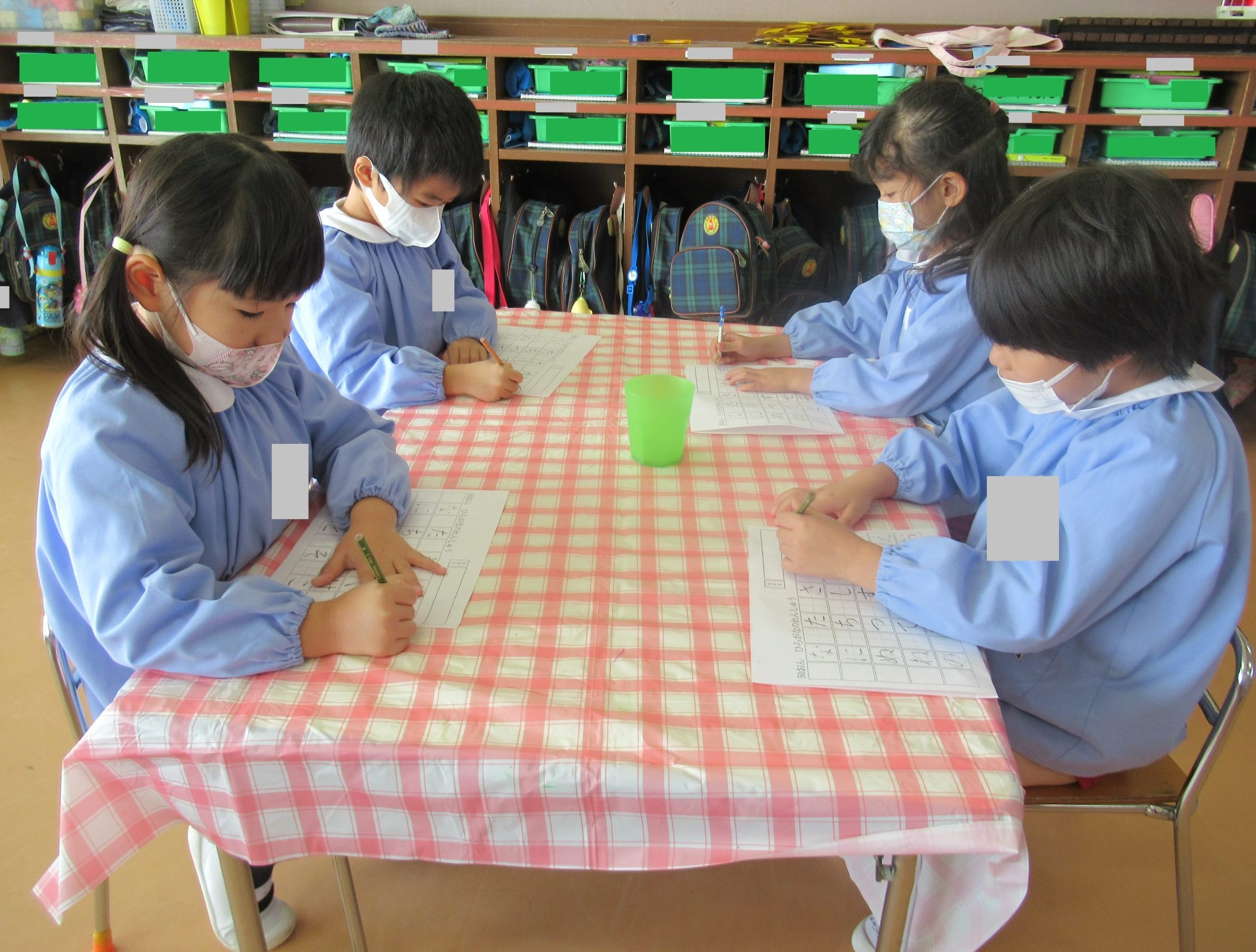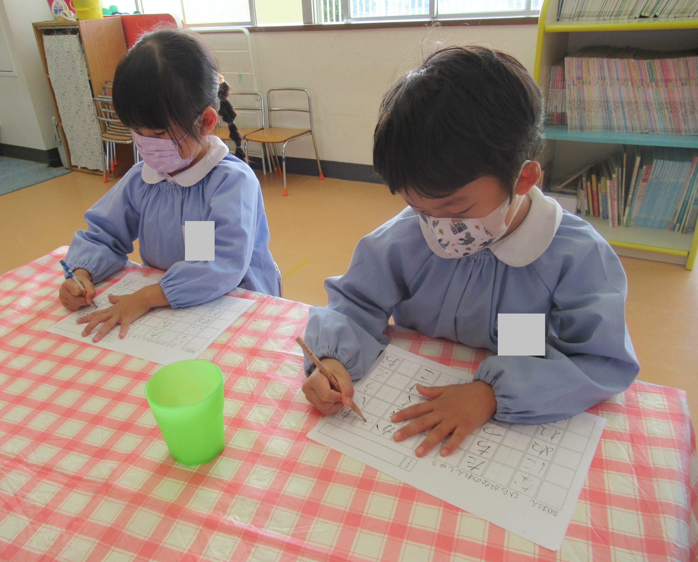 鉛筆の持ち方やひらがなの書き順を確認し、集中して取り組む姿が見られました🎵