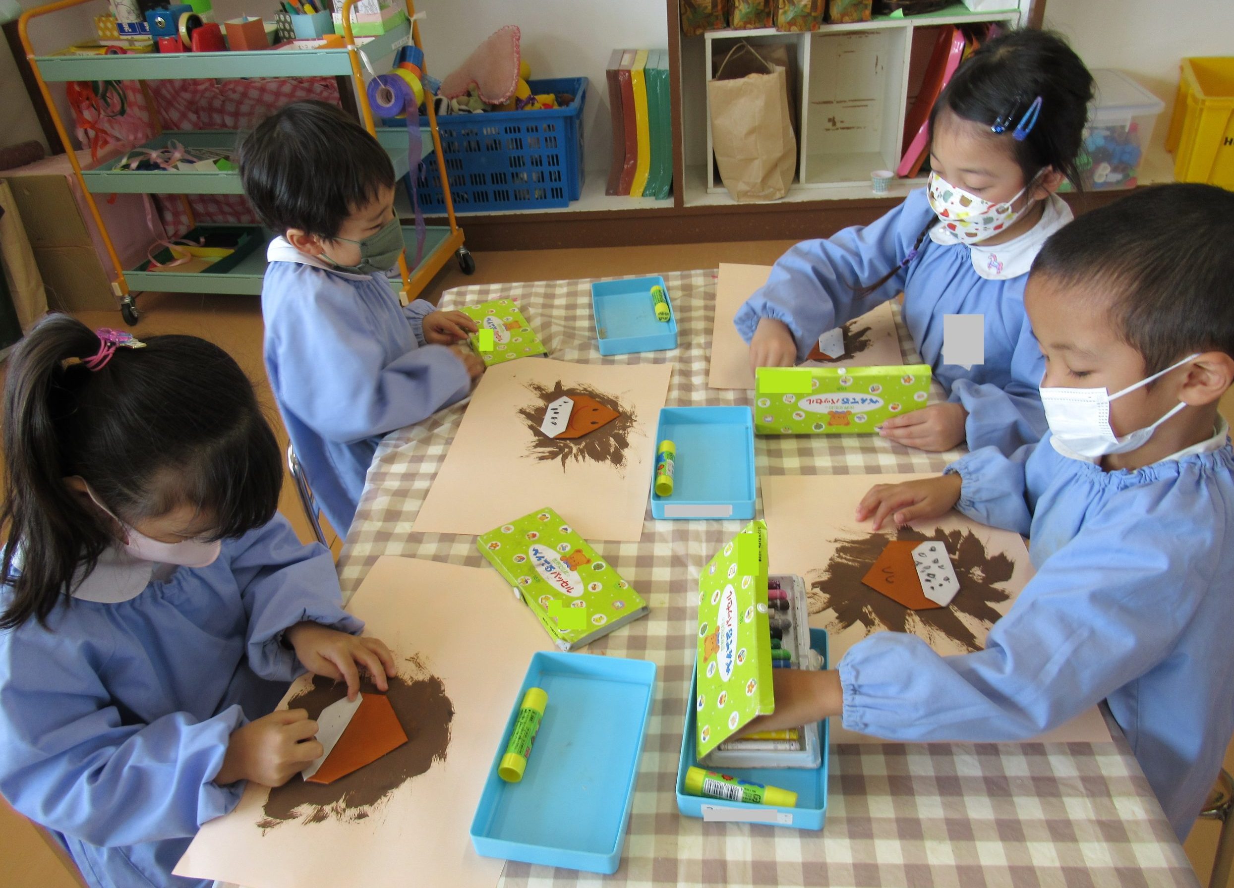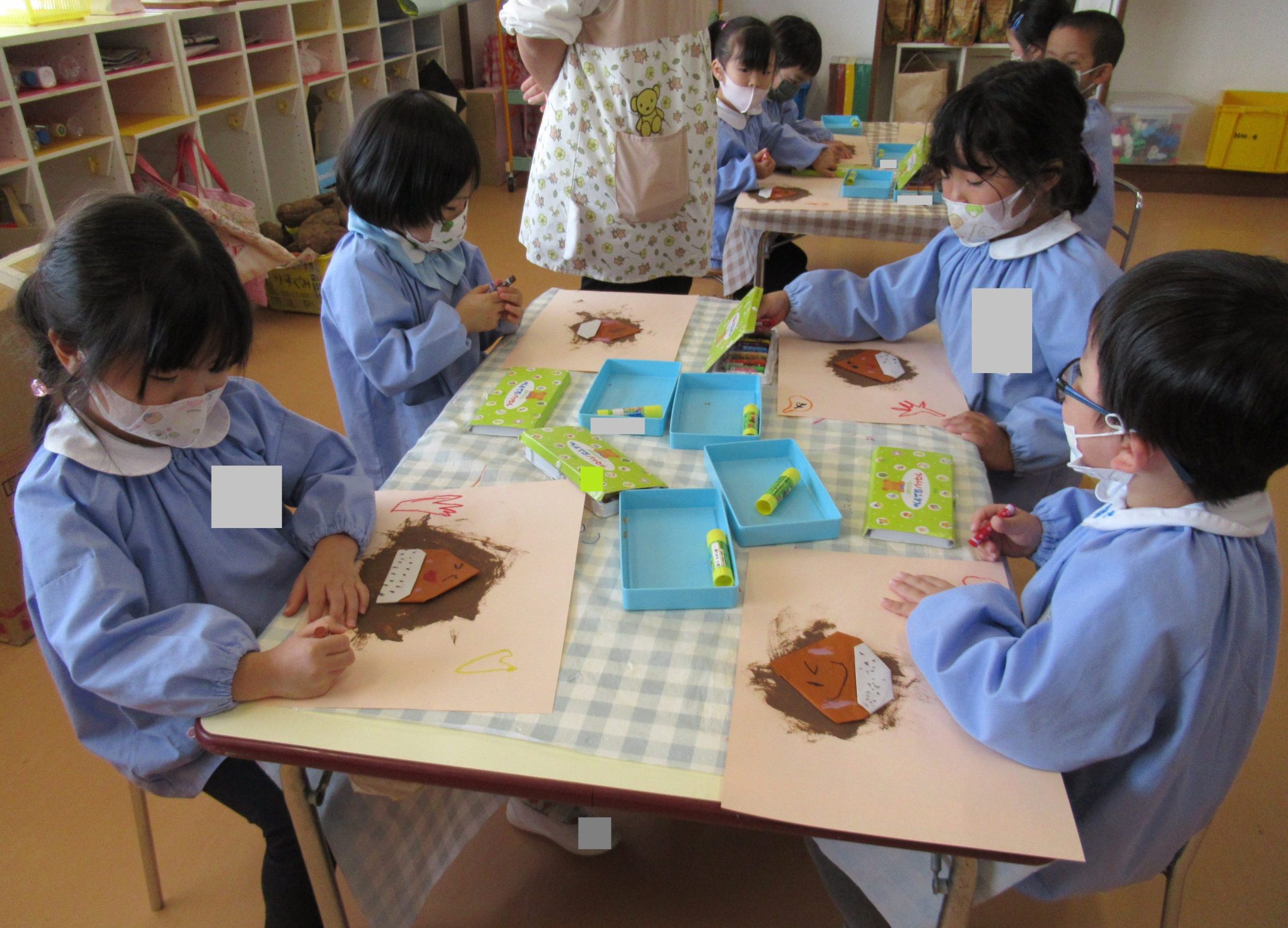 ☆クレヨンで栗の表情を描いたり、画用紙の周りに絵を描いていました🎵
