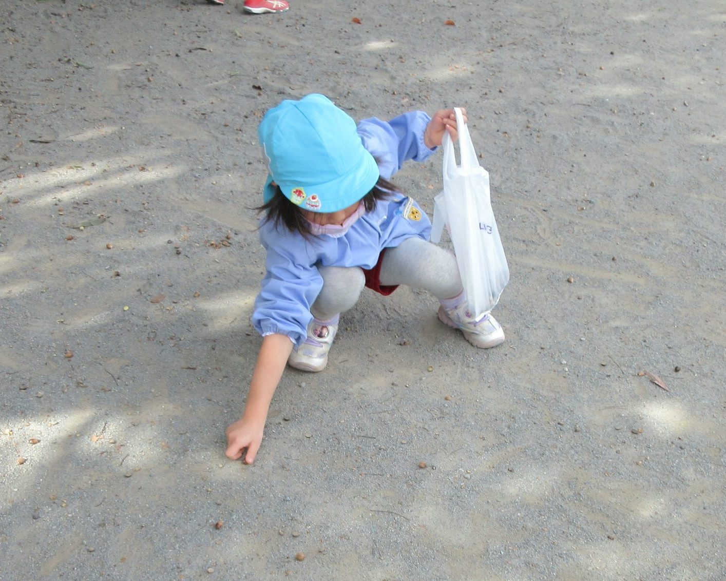 ☆ぺんぎん組さんは、壁に飾る飾りの製作で葉っぱを用いるために、近くの公園に葉っぱなどを拾いに行っていました!!