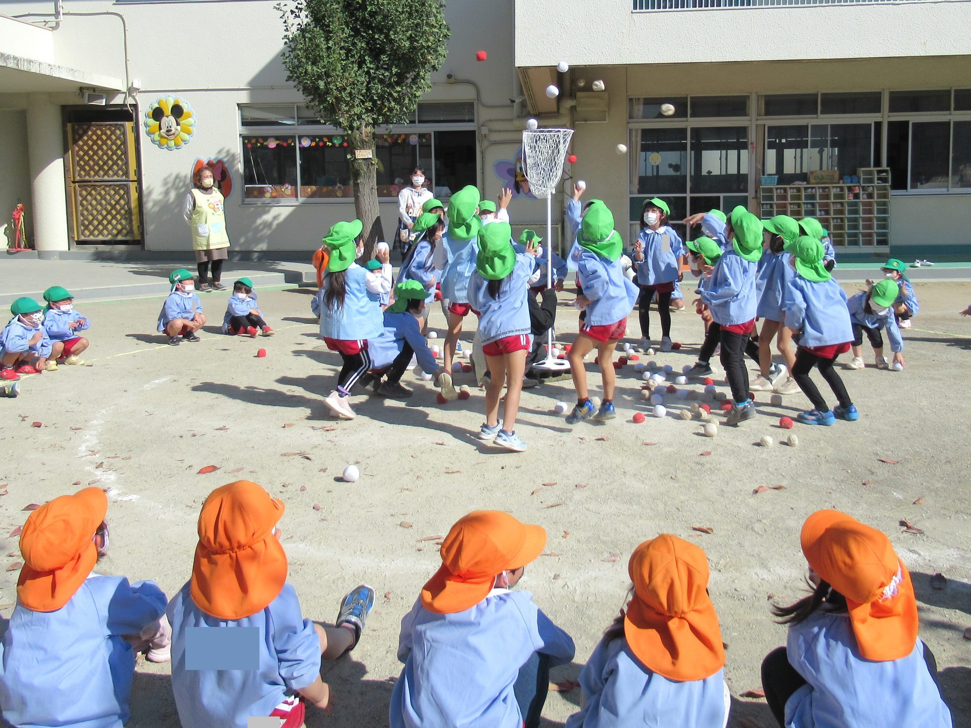 ☆2回戦目は、年長組さんが玉入れをし、年少組さん、年中組さんが応援をしました!!