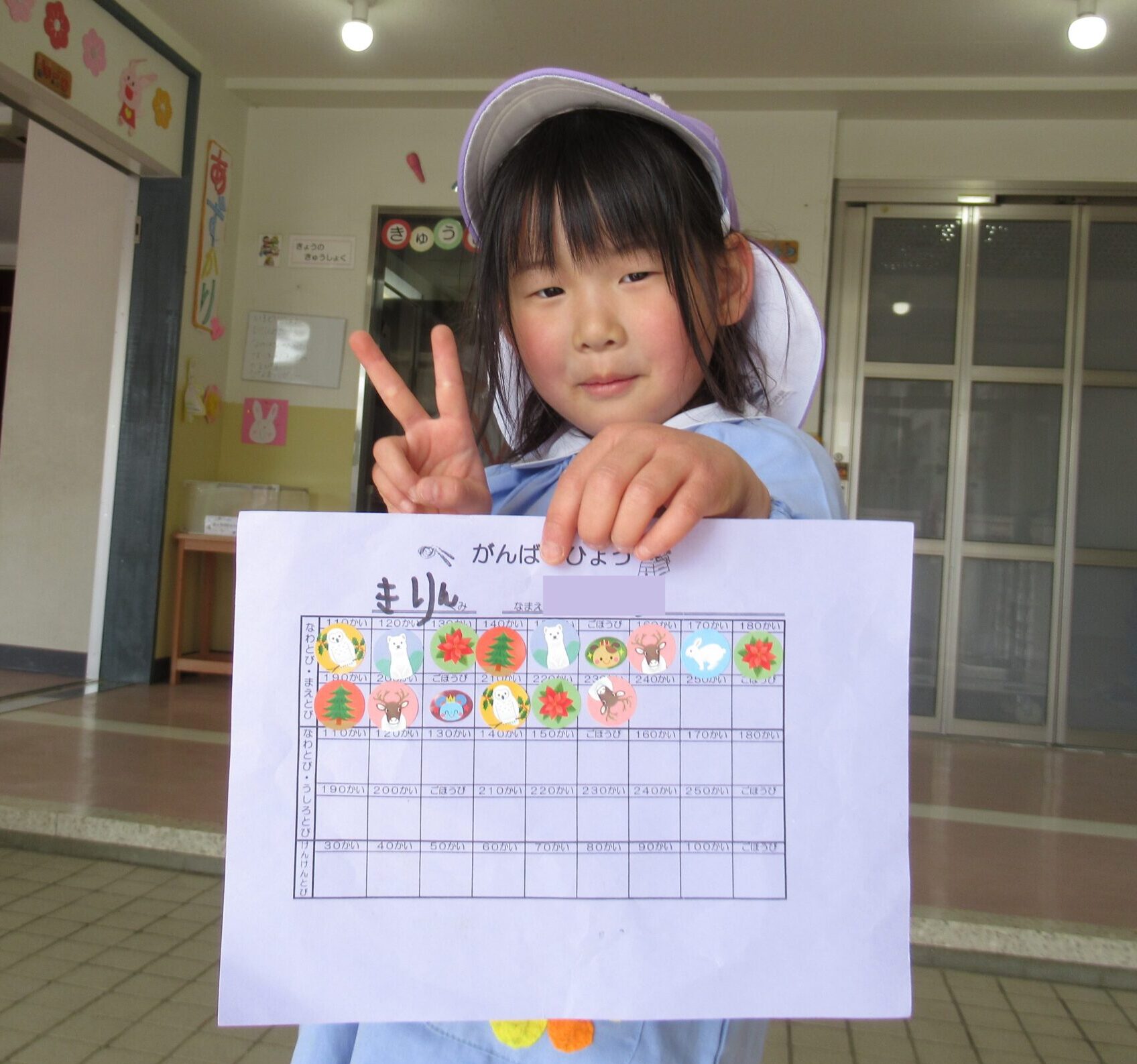『がんばりひょう』は、努力すればした分だけ実を結ぶことができることを実感できる活動の一つだと思います!!自由あそびなどでも、自主的になわとびや鉄棒に取り組んでいるお友だちもたくさんいます✨