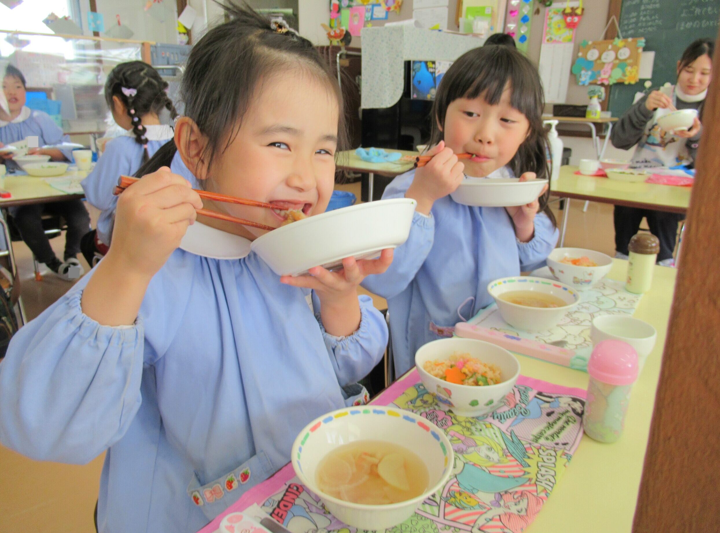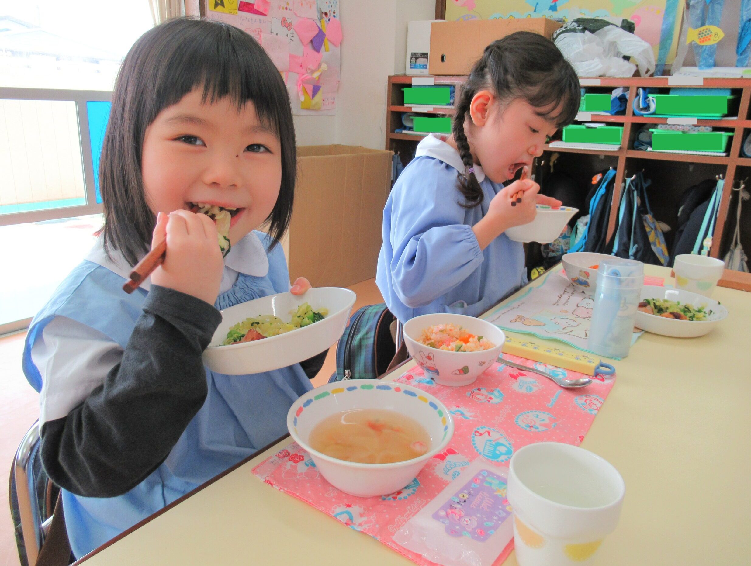☆3月3日のひなまつりが年長さんのおわかれ遠足だったため、3月2日(木)にひなまつり給食が出ました🎎✨