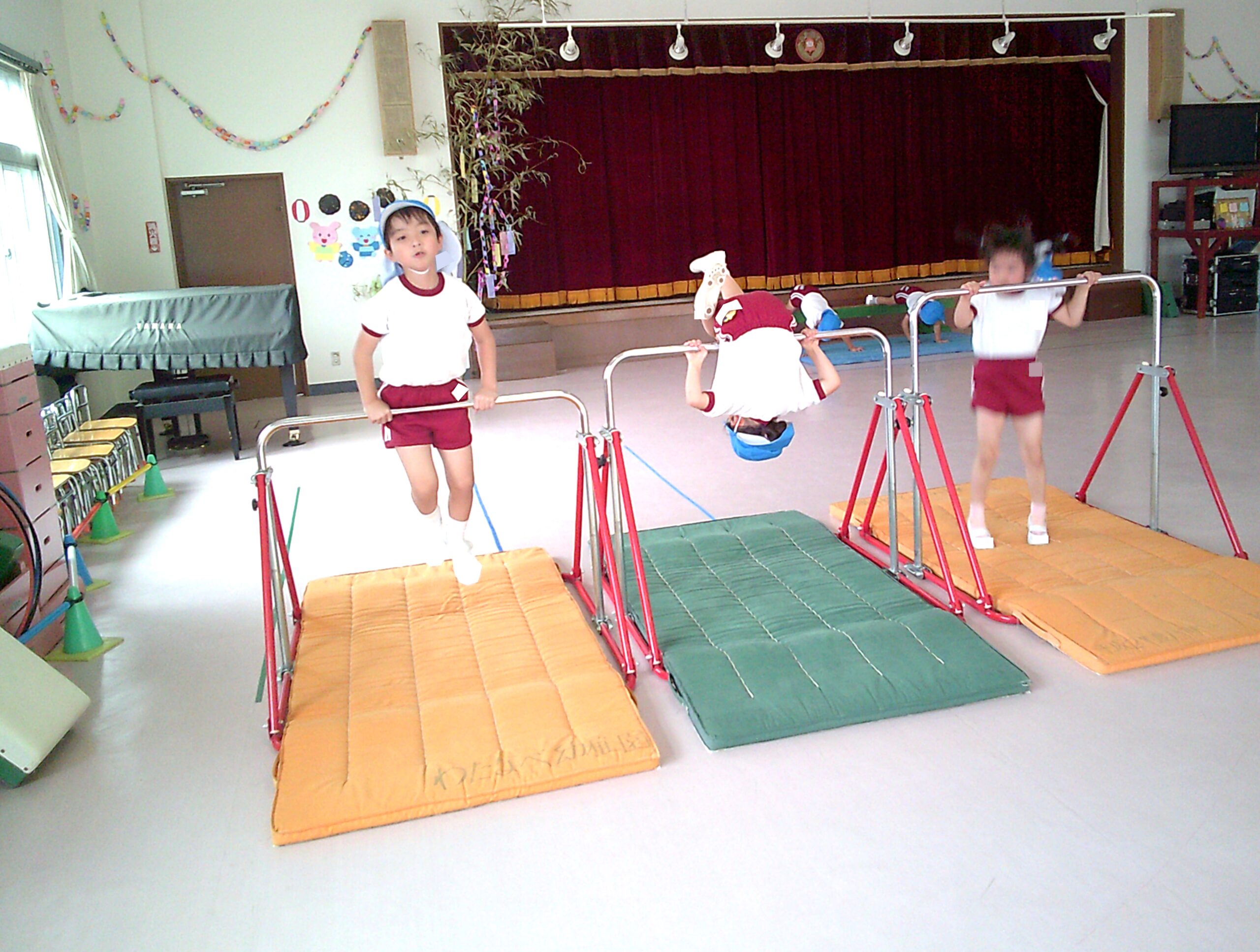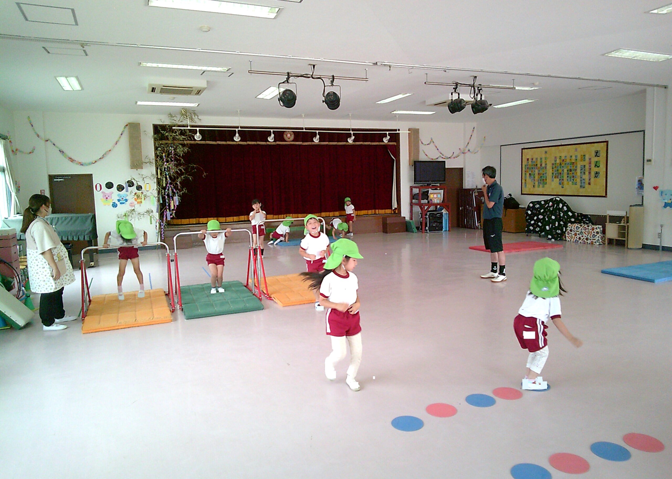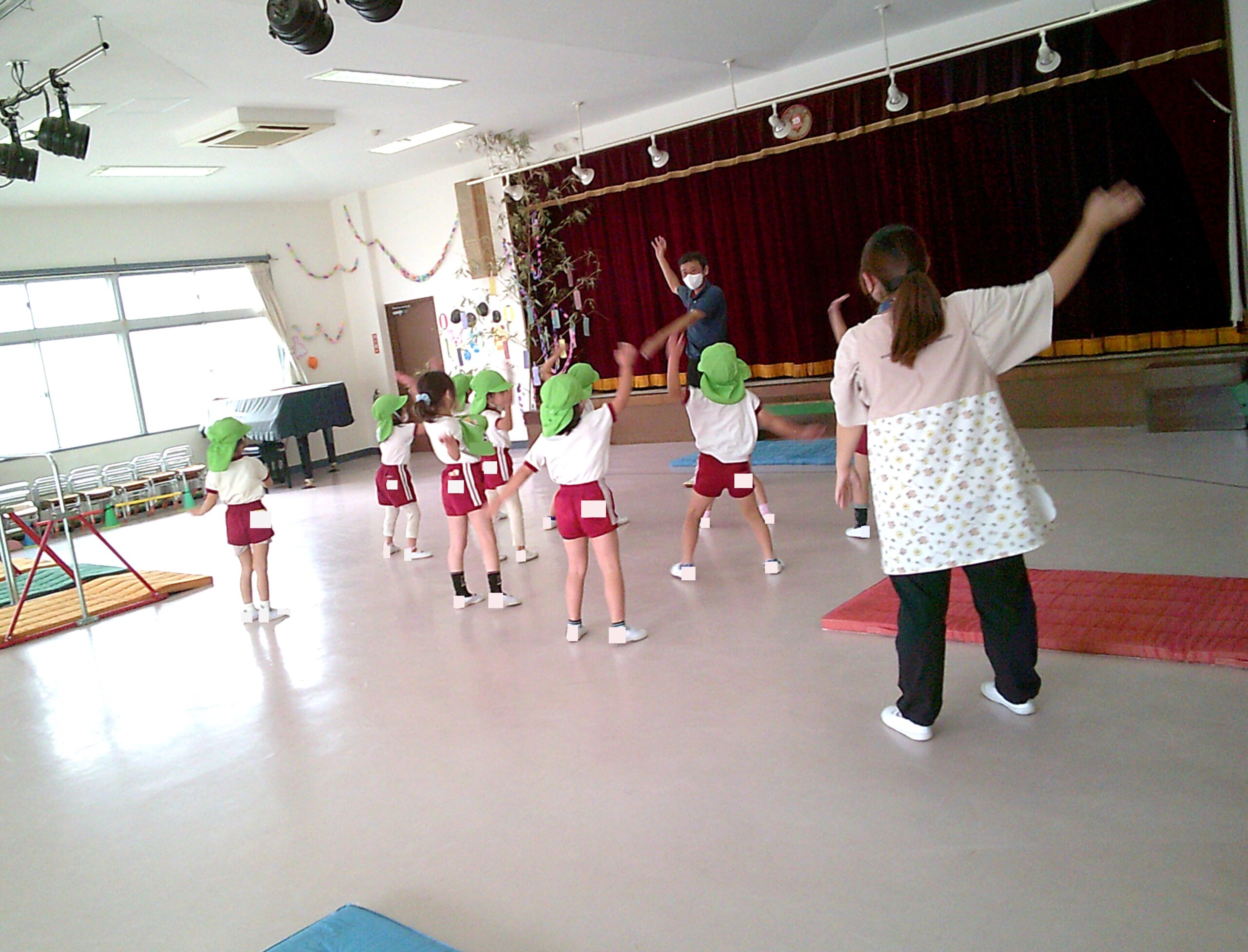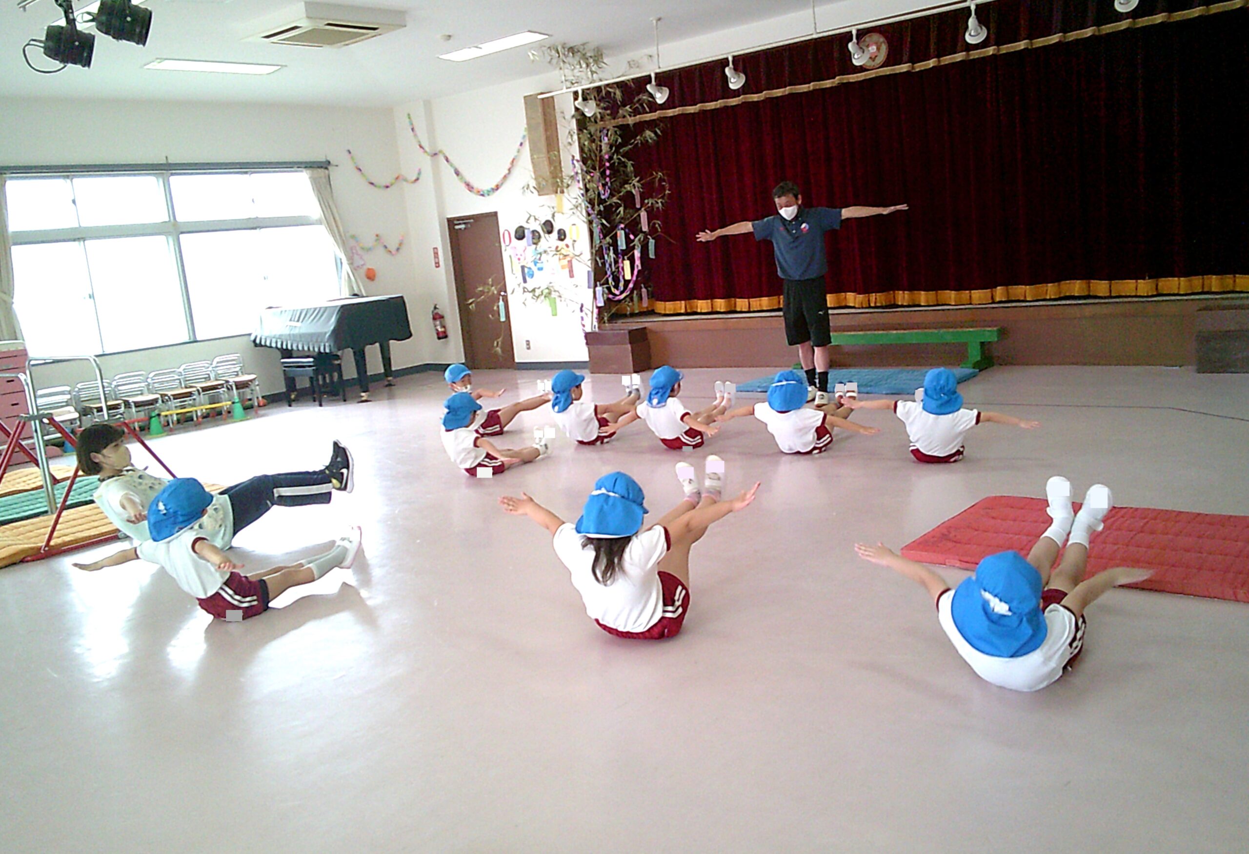 ホーム > 保育 > 年長組さん 体操☆ 2023/07/07 7月6日(木)に年長組さんの体操がありました! プールの予定でしたが、雨のためホールでの体操になりました✨ <年長組さんの体操の様子> ブリッジなど新しいことにも挑戦しながら、 元気いっぱい身体を動かしていました✨ - 保育
