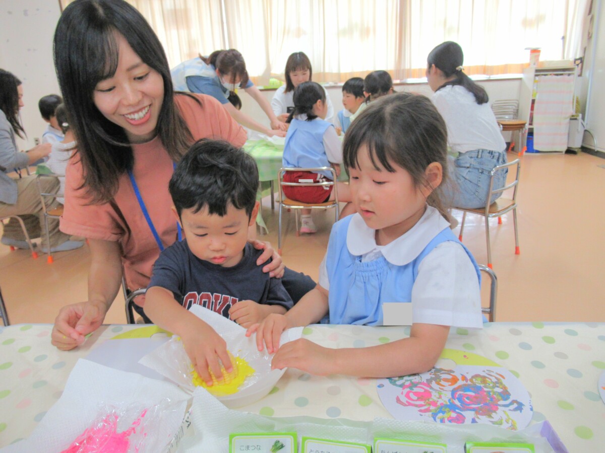 ☆今回は、年中組さんのぺんぎん組さんと一緒にうちわ作りに取り組みました🎵