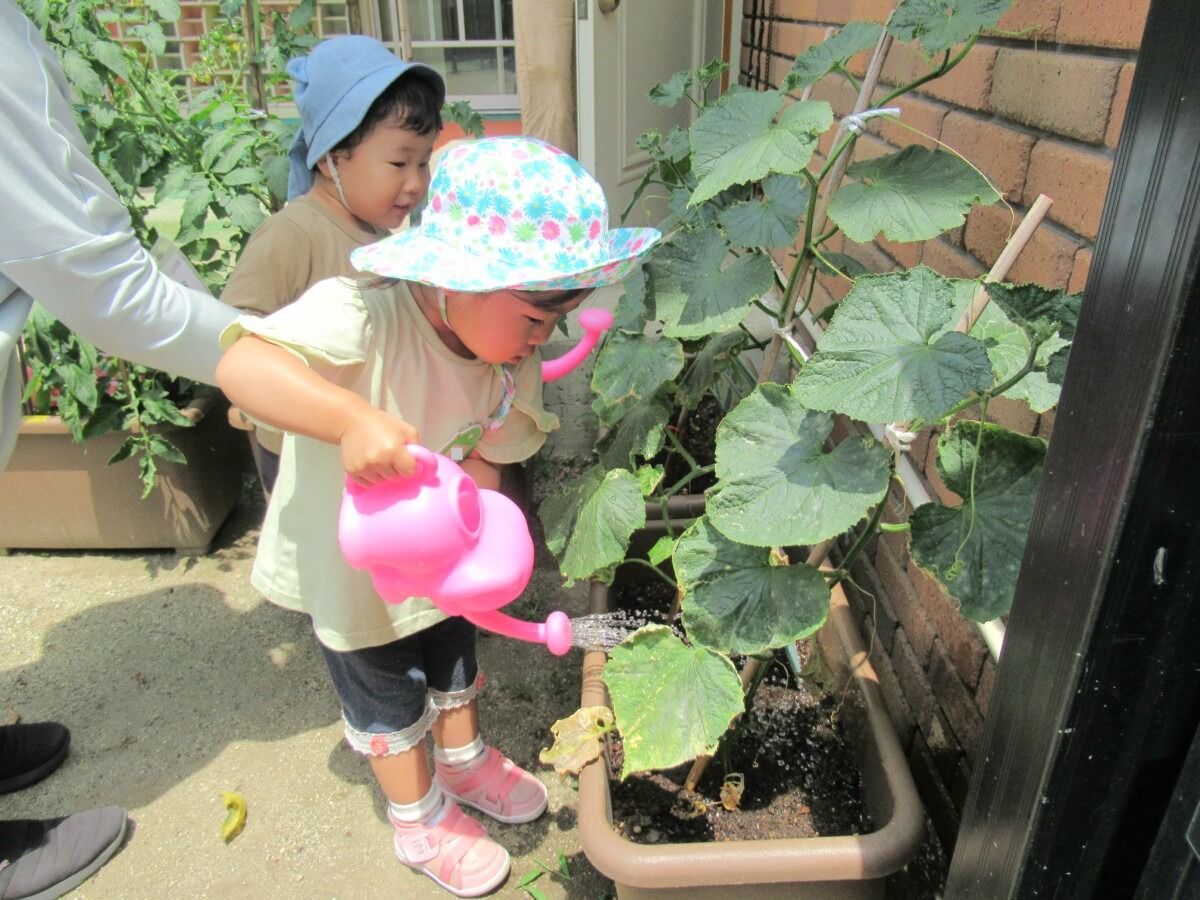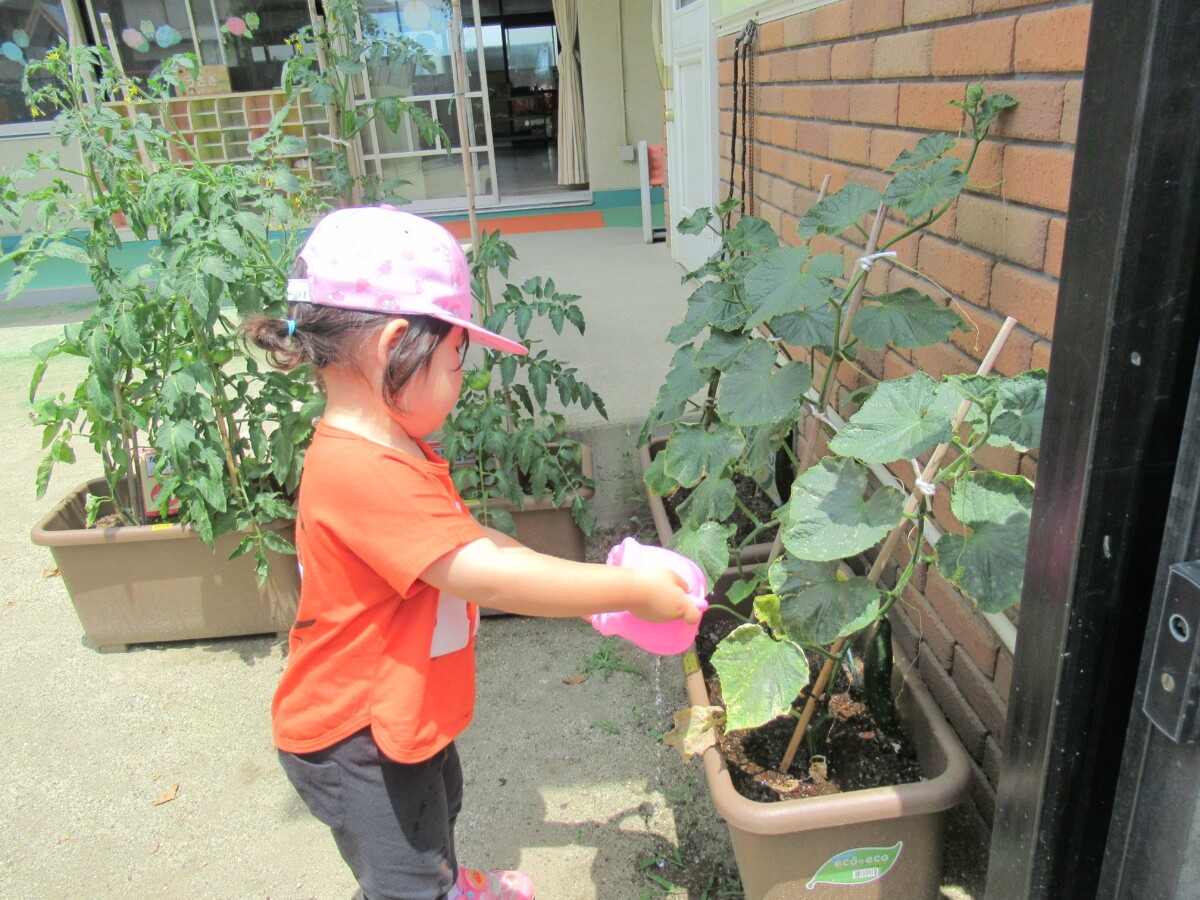 ☆たまご組さんが育てている”きゅうり”や”ミニトマト”に水やりをしてくれました🎵