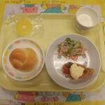 ☆配膳をしたあとは、お当番さんが挨拶をしてくれて、たまご組さんとぱんだ組さんが一緒に給食を食べました🎵