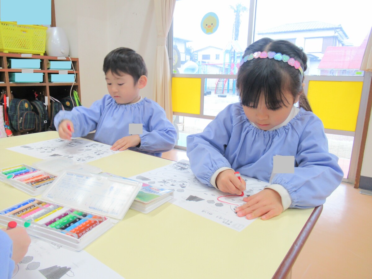 3月3日(月)の年少組さん、年中組さんの活動の様子をお伝えしたいと思います!!