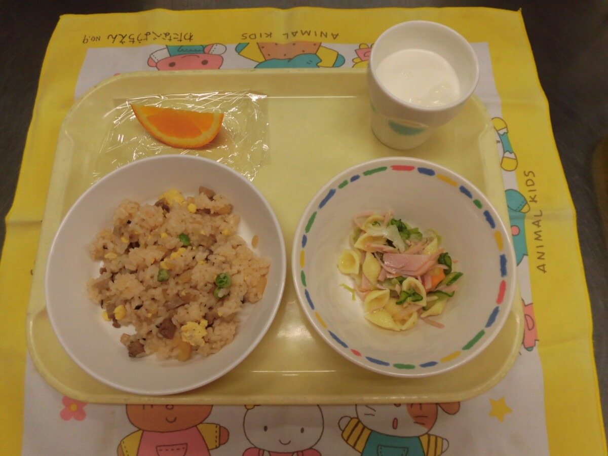 6月6日(金)チャーハン・マカロニサラダ・牛乳・オレンジ