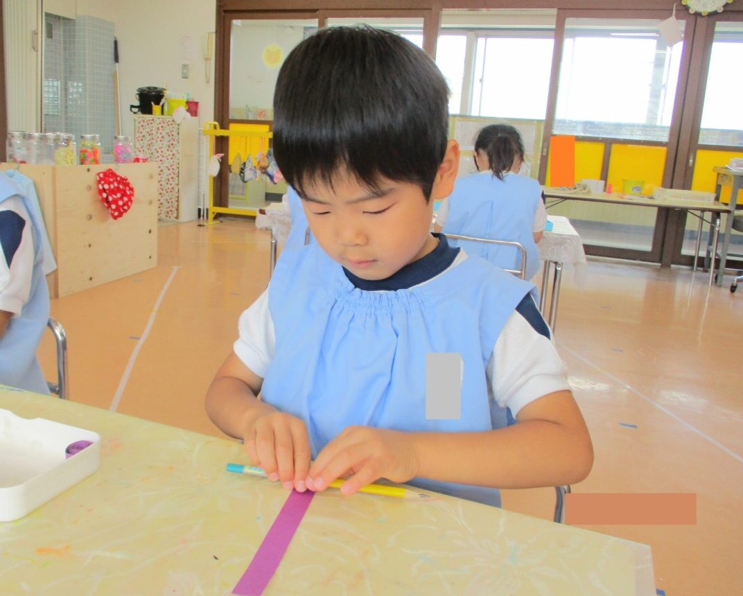 ☆細い画用紙を鉛筆を使って丸めていました🎵