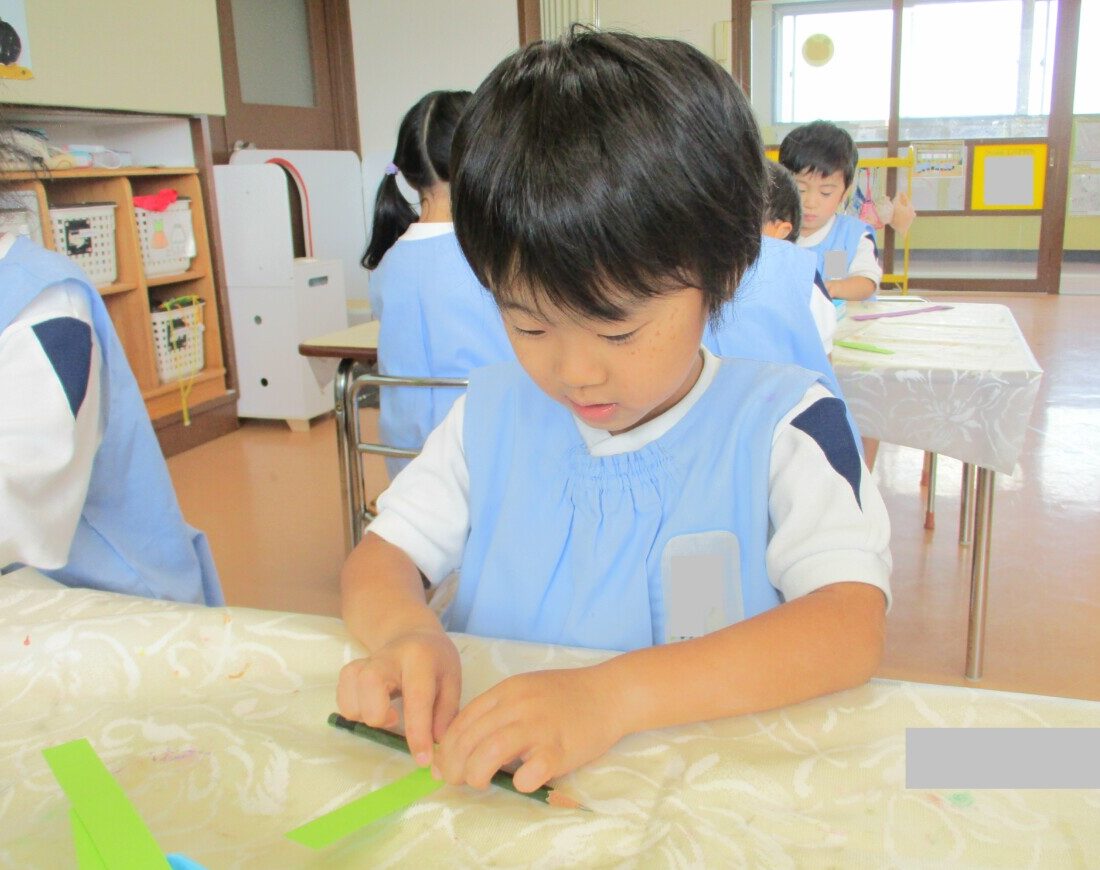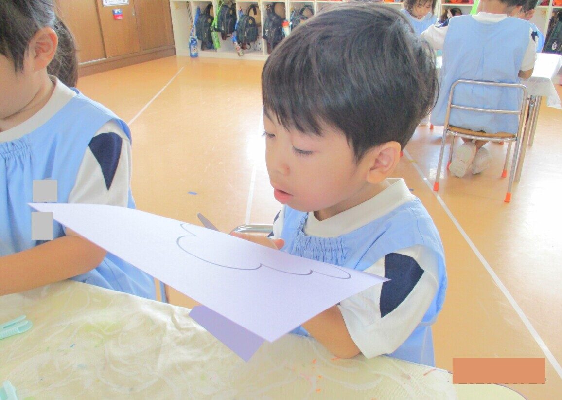 ☆ぶどうとマスカットの選んだほうの画用紙の線の上をはさみで切っていました✨
