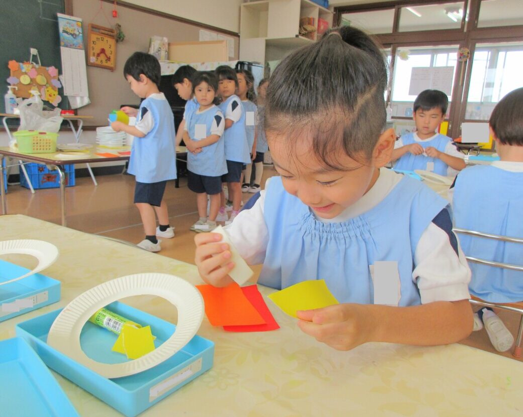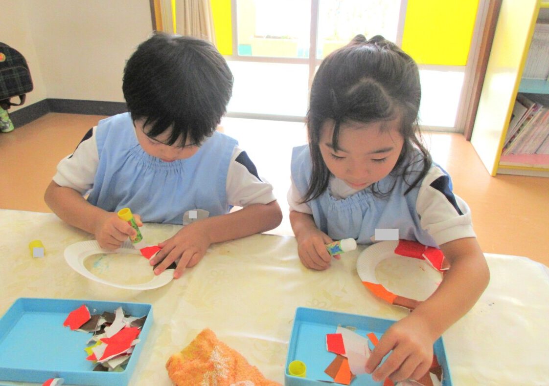 ホーム > 保育 > 9月24日(水) うさぎ組さん壁面製作☆ 2025/09/24 うさぎ組さんが壁に飾る飾りの製作に取り組んでいました!! ☆紅葉の色合いの折紙をちぎっていました🎵 ☆ちぎった折紙を紙皿に貼っていました✨ 楽しそうに取り組む姿が見られました😊✨ また後日続きに取り組むようです🎵 - 保育