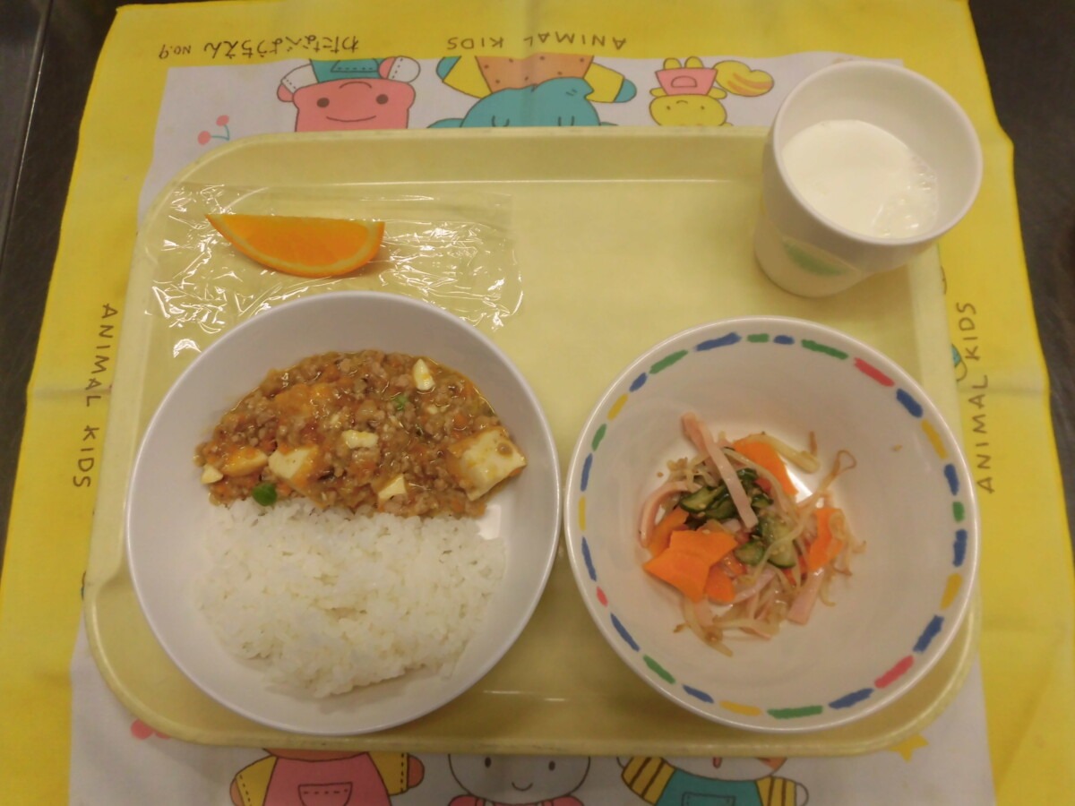 9月22日(月)ご飯・厚揚げマーボー豆腐・もやしの中華サラダ・牛乳・オレンジ