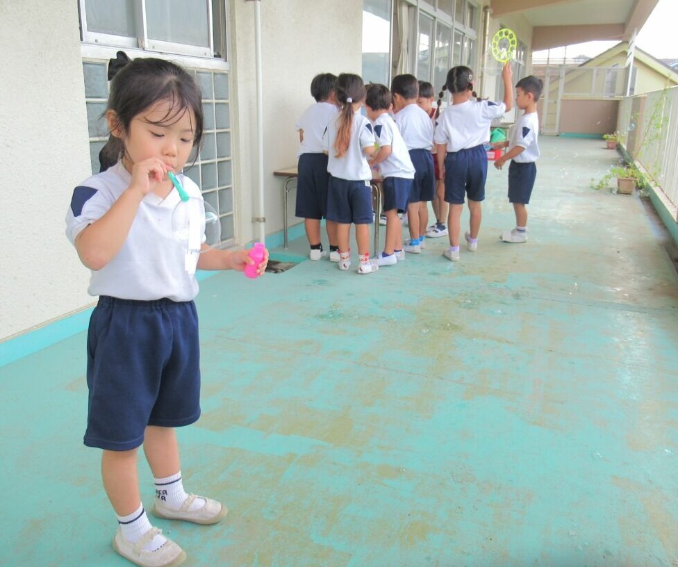 ☆2階のベランダでシャボン玉あそびを楽しんでいるお友だちがいました😊🎵