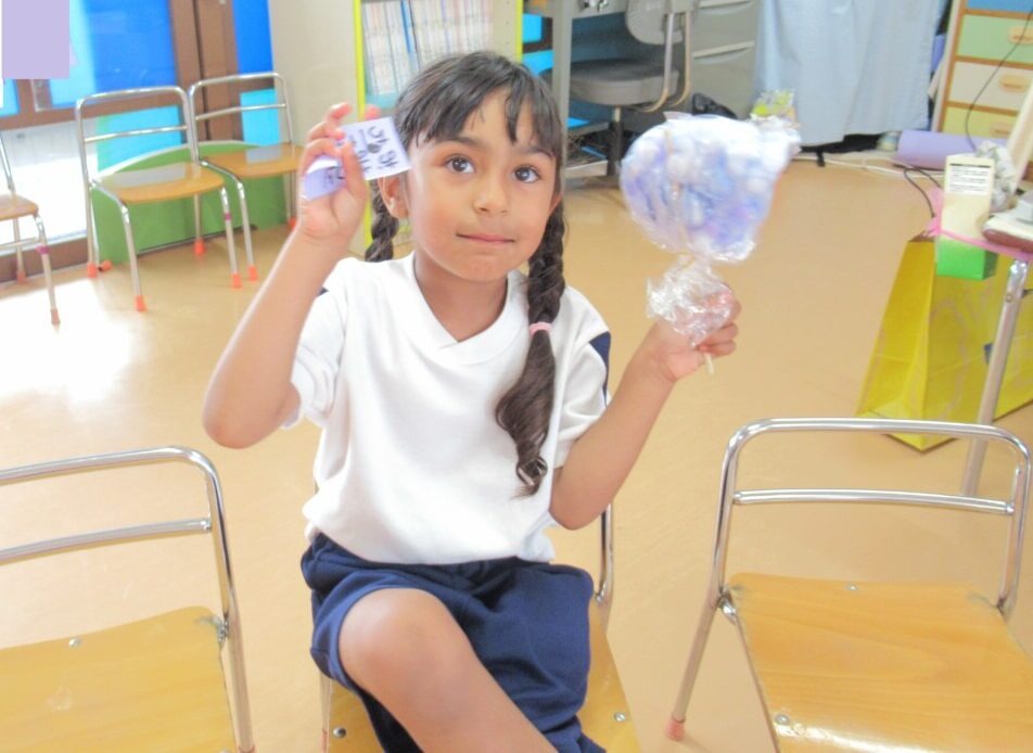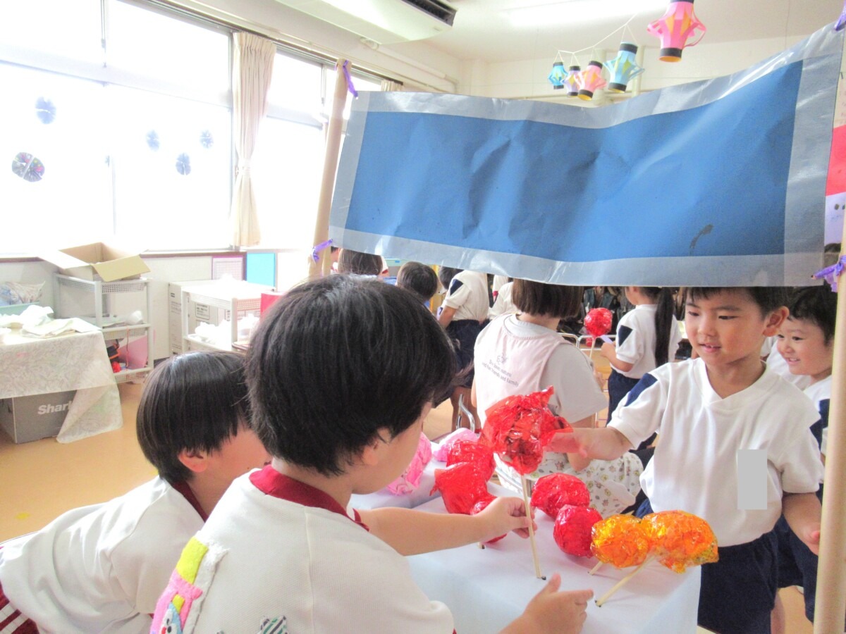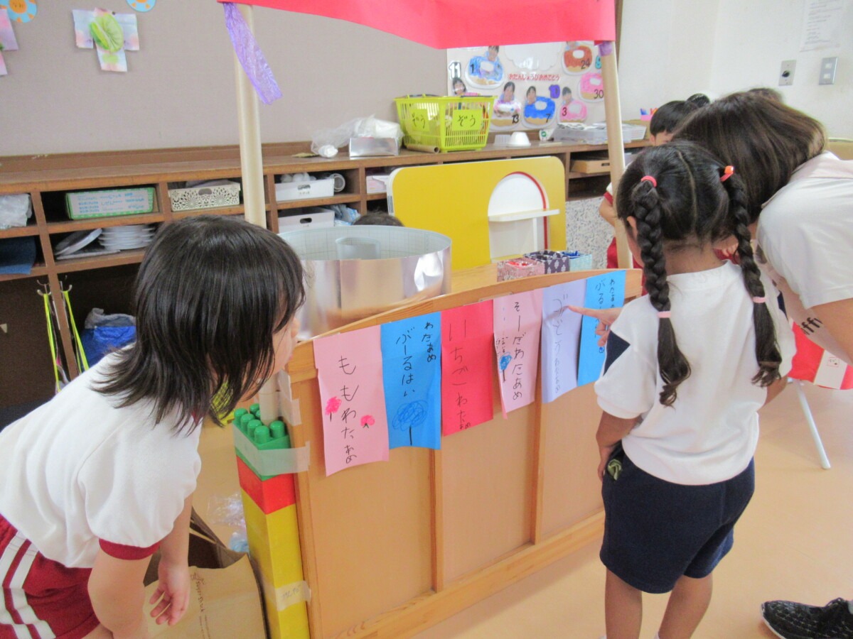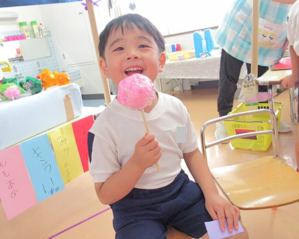 ホーム > 保育 > 10月6日(月) きりん組さんおまつりごっこ3日目☆ 2025/10/06 10月6日(月)に、きりん組さんの『おまつりごっこ』の3日目がありました!! 今回は、うさぎ組さんを招待していました🎵 ☆うさぎ組さんは、チケットを持ってうれしそうにきりん組さんのお部屋に向かっていました😊!! ☆「どのお店に行くか迷っちゃう😊💛」とうさぎ組さんは楽しんでいました🎵 ☆きりん組さん「何味にしますか😊?」うさぎ組さん「何味にしようかな💛」 ☆もらった商品を手にポーズ💛 子どもたちのにこにこ笑顔があふれていました😊✨ - 保育