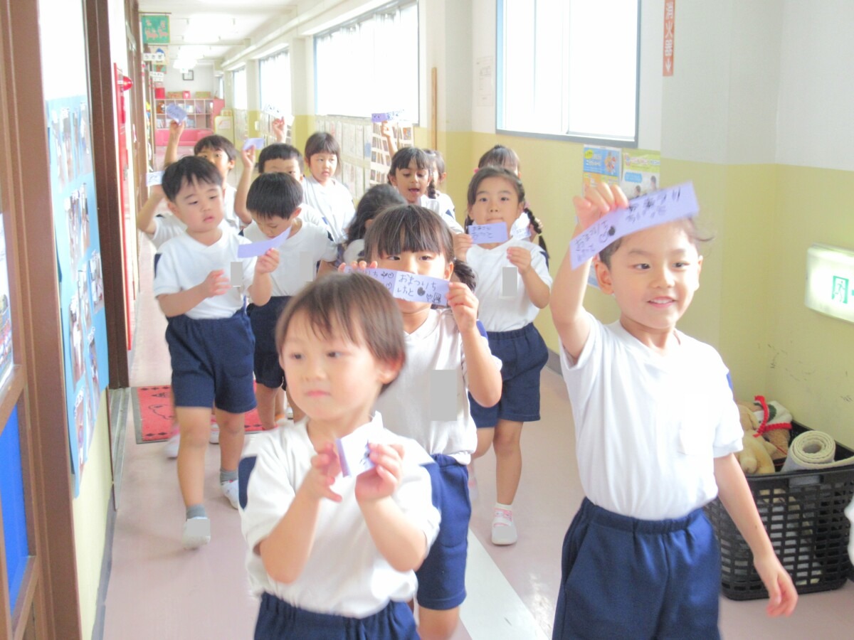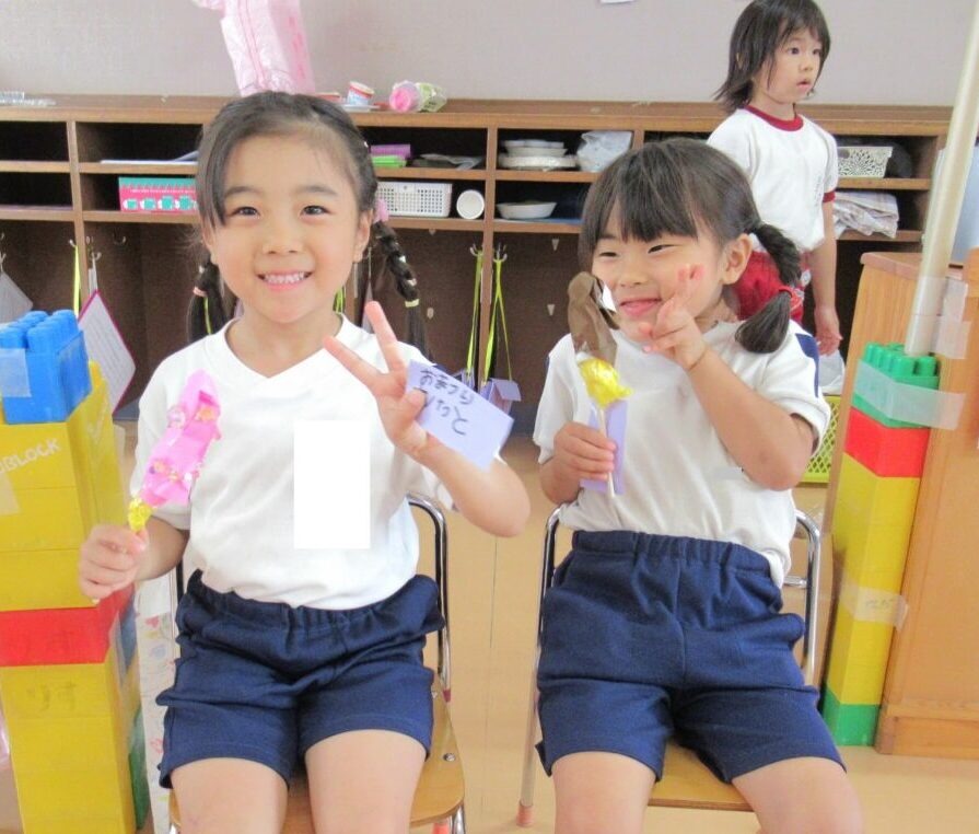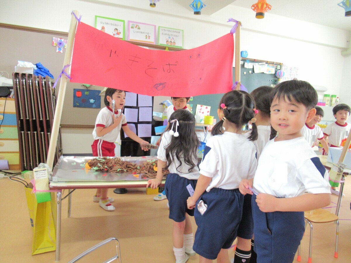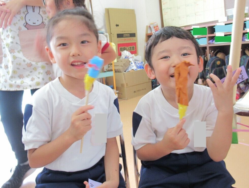 ホーム > 保育 > 10月6日(月) きりん組さんおまつりごっこ3日目☆ 2025/10/06 10月6日(月)に、きりん組さんの『おまつりごっこ』の3日目がありました!! 今回は、うさぎ組さんを招待していました🎵 ☆うさぎ組さんは、チケットを持ってうれしそうにきりん組さんのお部屋に向かっていました😊!! ☆「どのお店に行くか迷っちゃう😊💛」とうさぎ組さんは楽しんでいました🎵 ☆きりん組さん「何味にしますか😊?」うさぎ組さん「何味にしようかな💛」 ☆もらった商品を手にポーズ💛 子どもたちのにこにこ笑顔があふれていました😊✨ - 保育