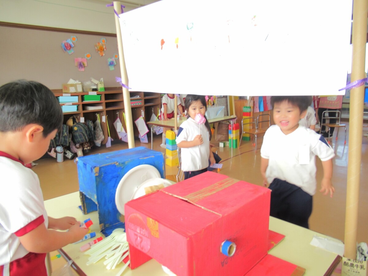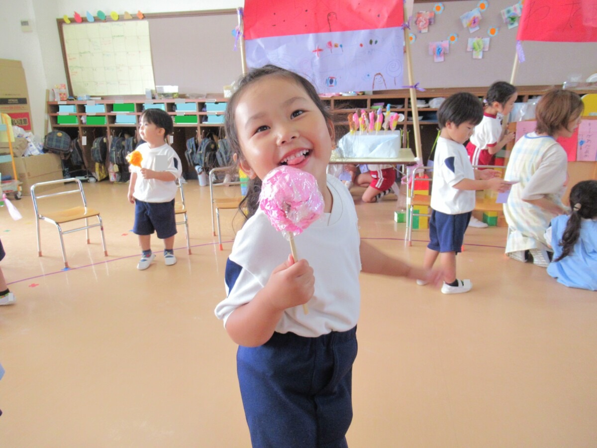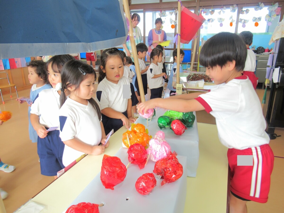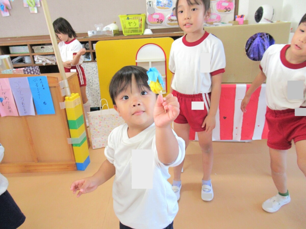 1学期から少しずつ準備をしてきたきりん組さんの『おまつりごっこ』は、大成功で終わることができました😊✨