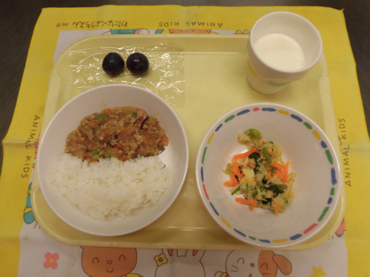 10月14日(火)ご飯・マーボー春雨・ほうれん草と人参のナムル・牛乳・ぶどう