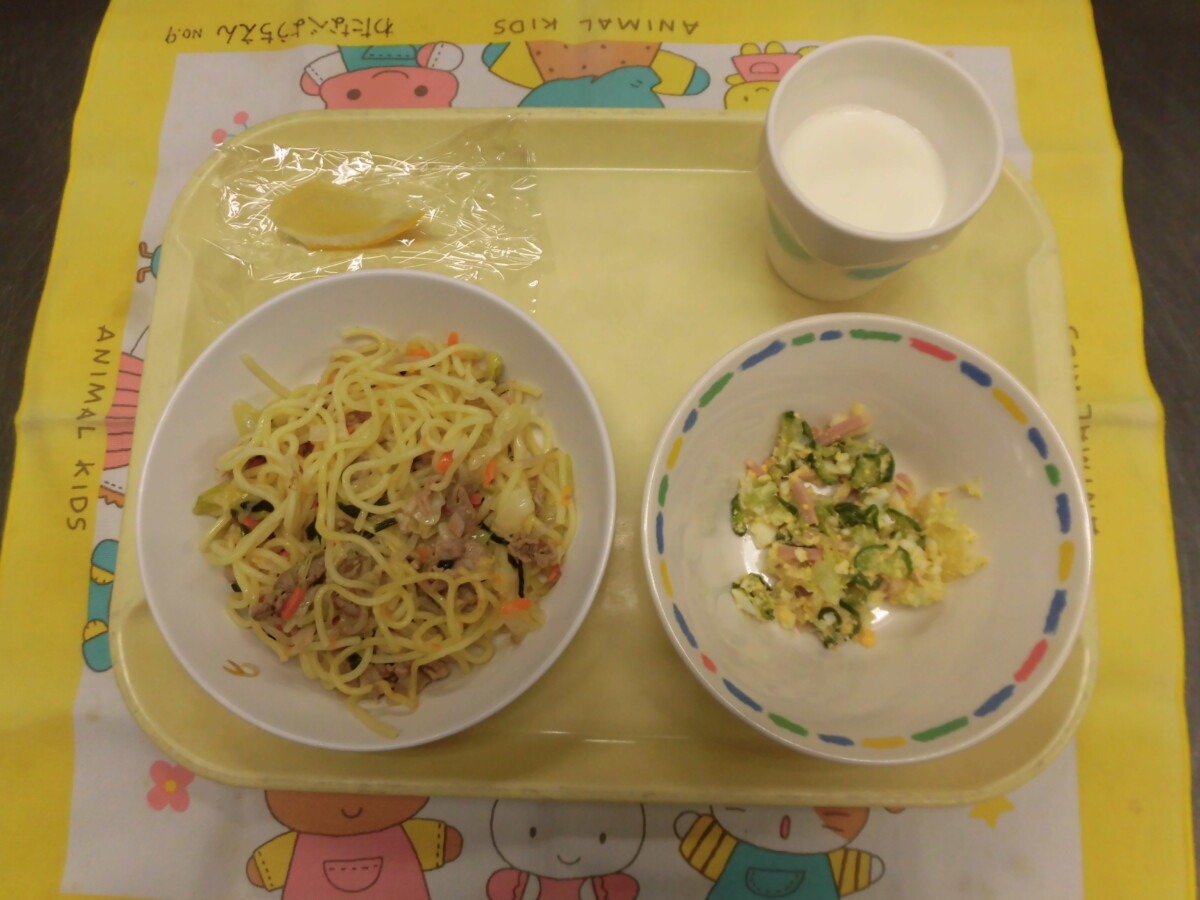10月15日(水)塩焼きそば・ミモザサラダ・牛乳・グレープフルーツ