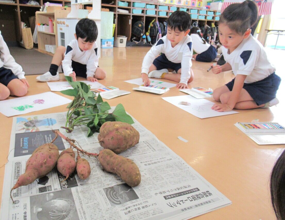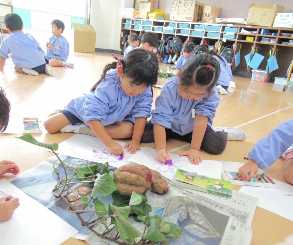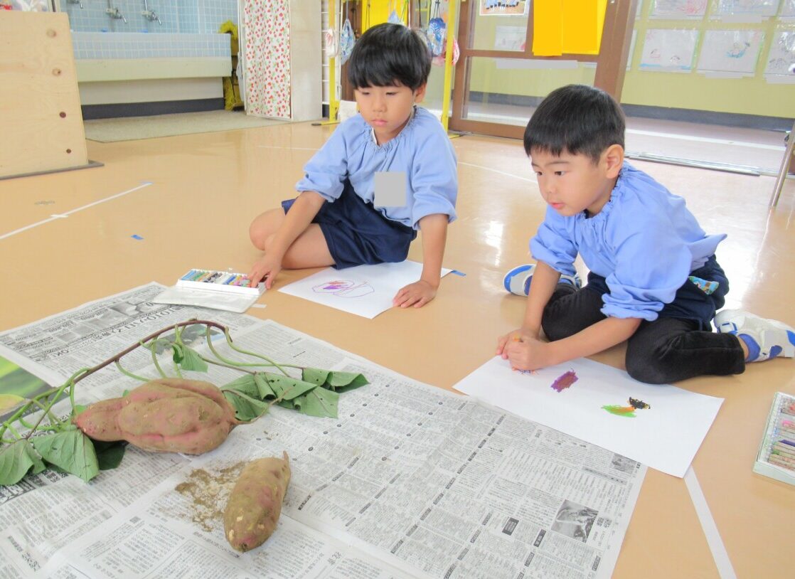 10月27日(月)に、先週金曜日に掘ったさつまいもの観察画に取り組んでいました🍠✨