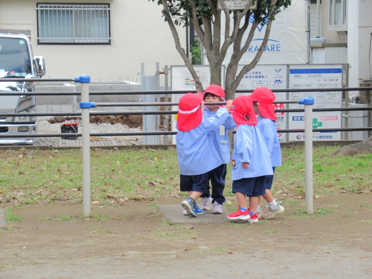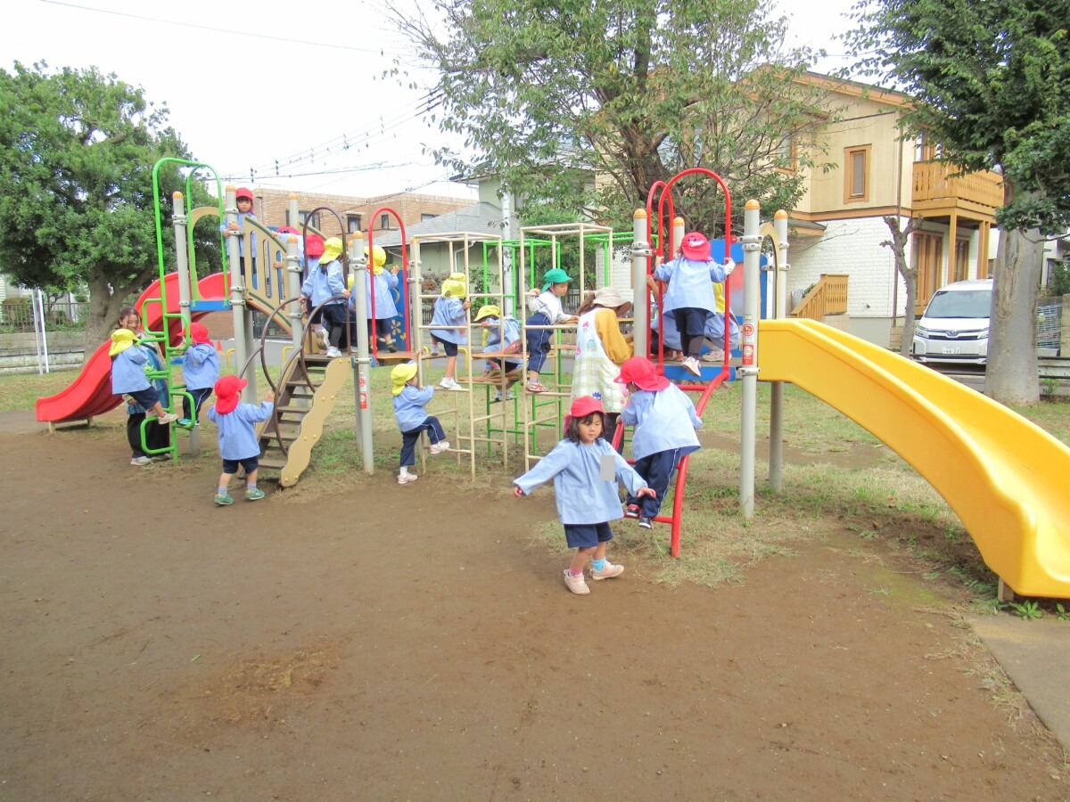 10月30日(木)に、年少組さんが園外保育で、幼稚園の近くの公園にあそびに行っていました🎵