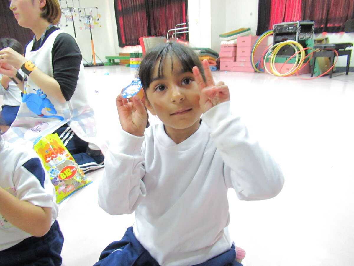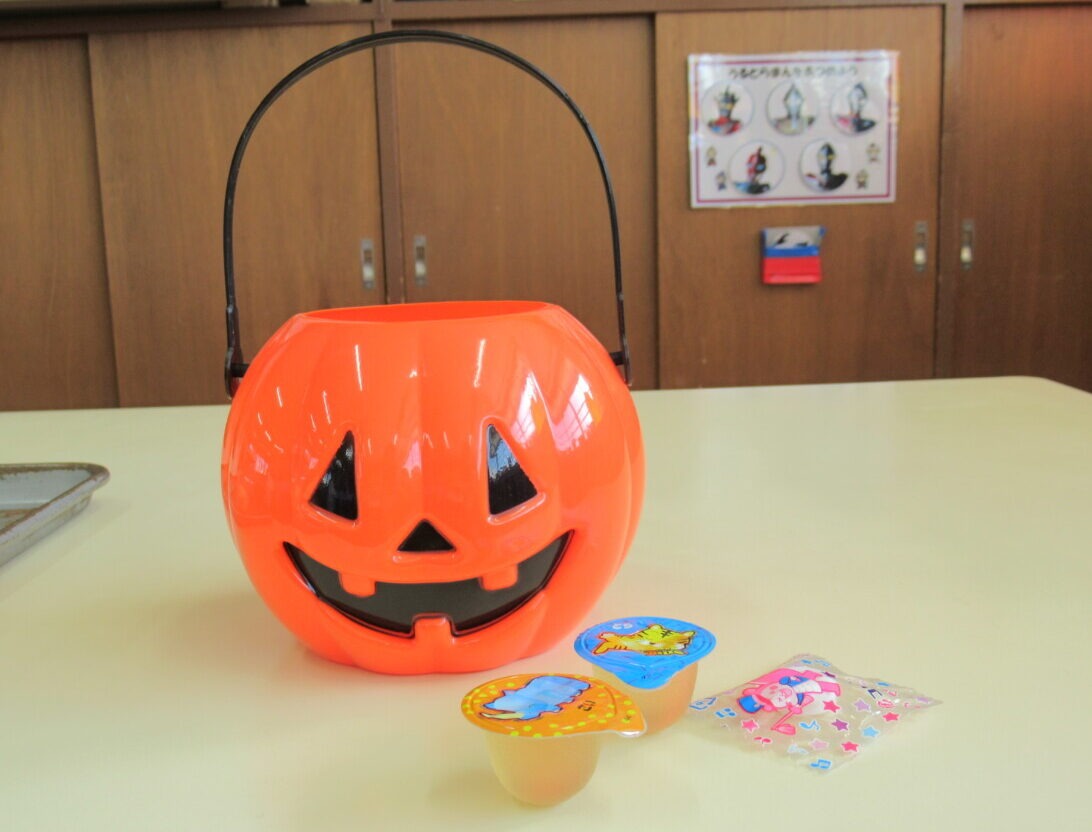 ☆うさぎ組さんとぺんぎん組さんもホールでハロウィンのお楽しみをして、お菓子をもらって味わっていました🎵