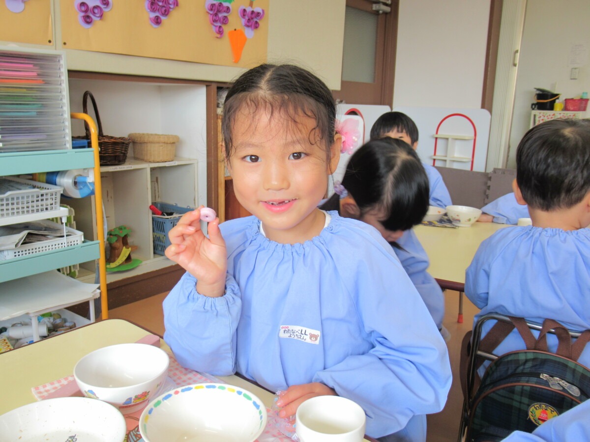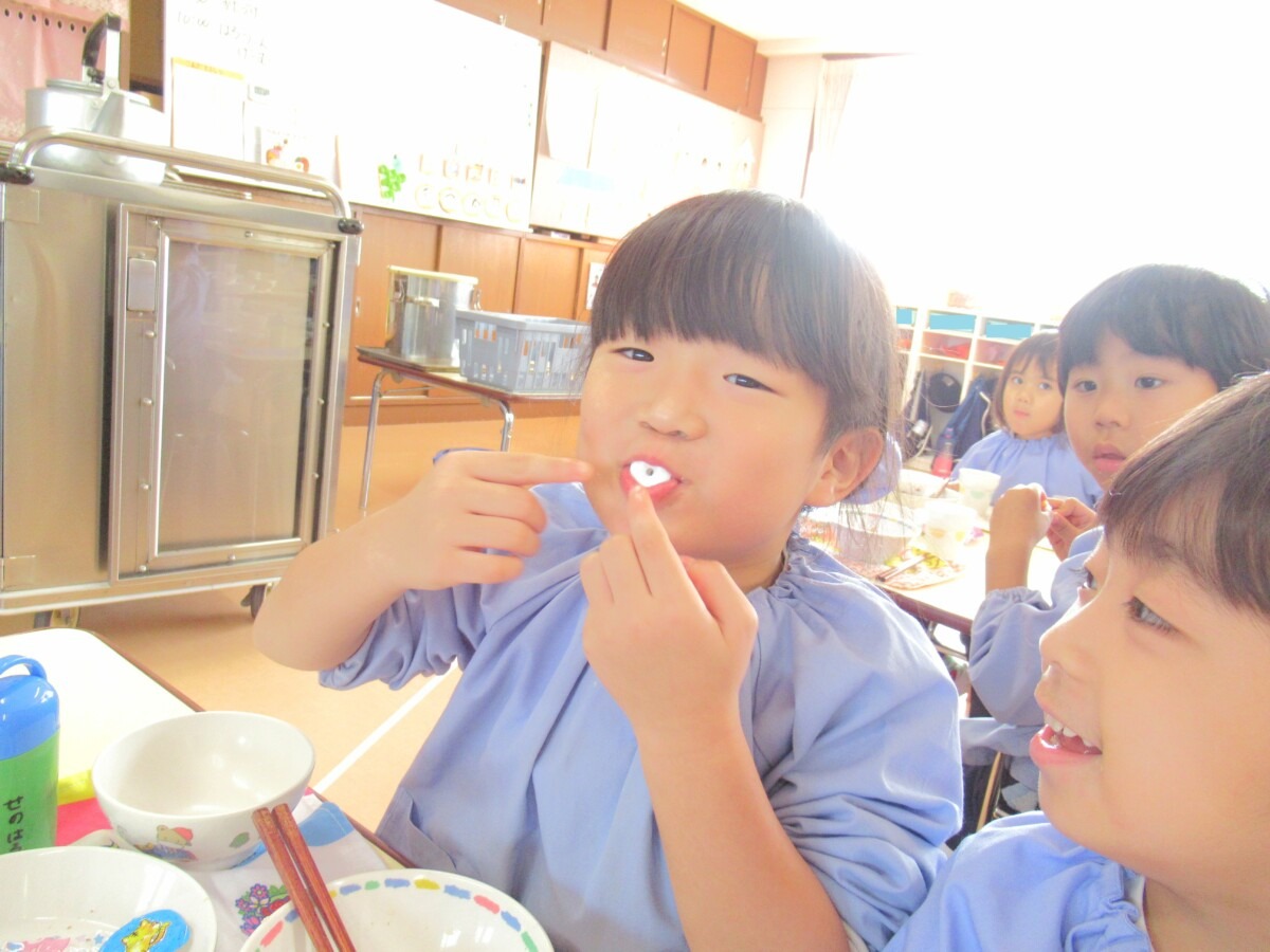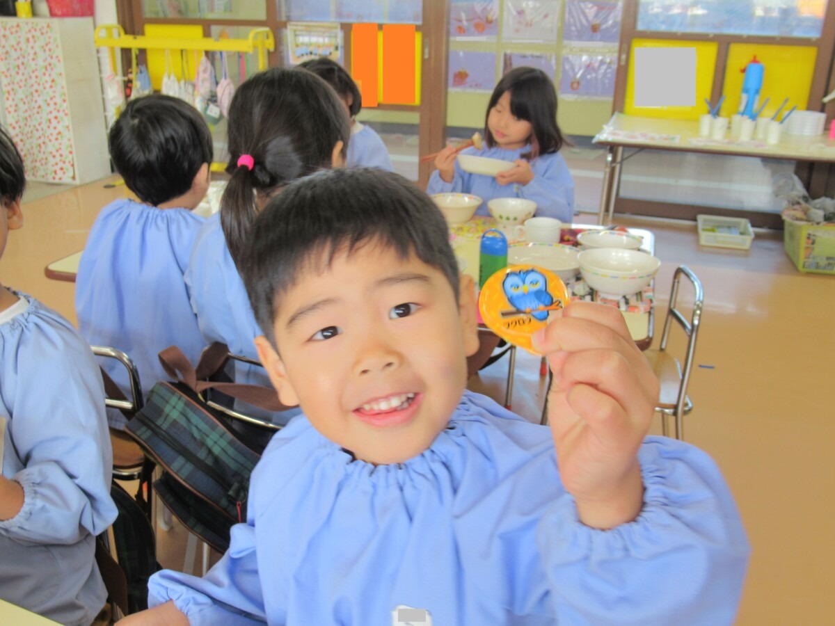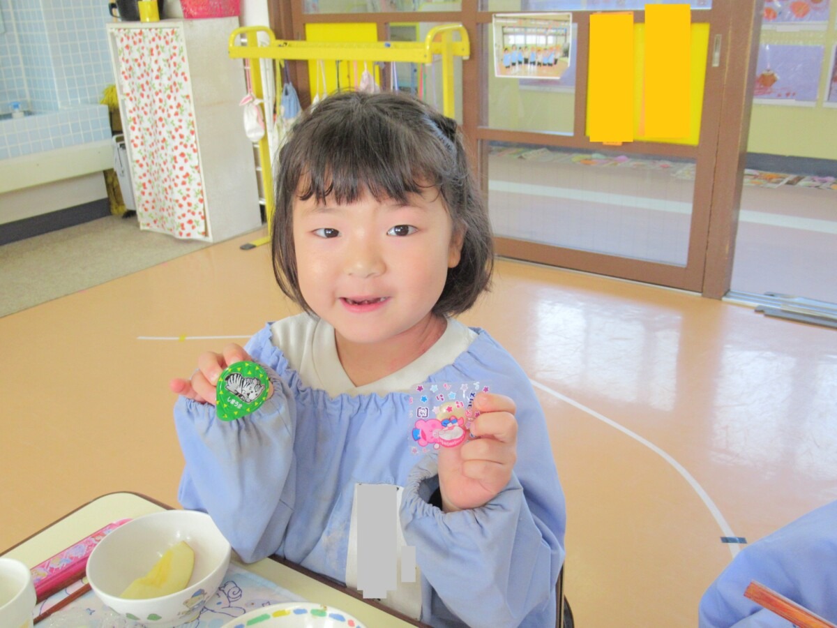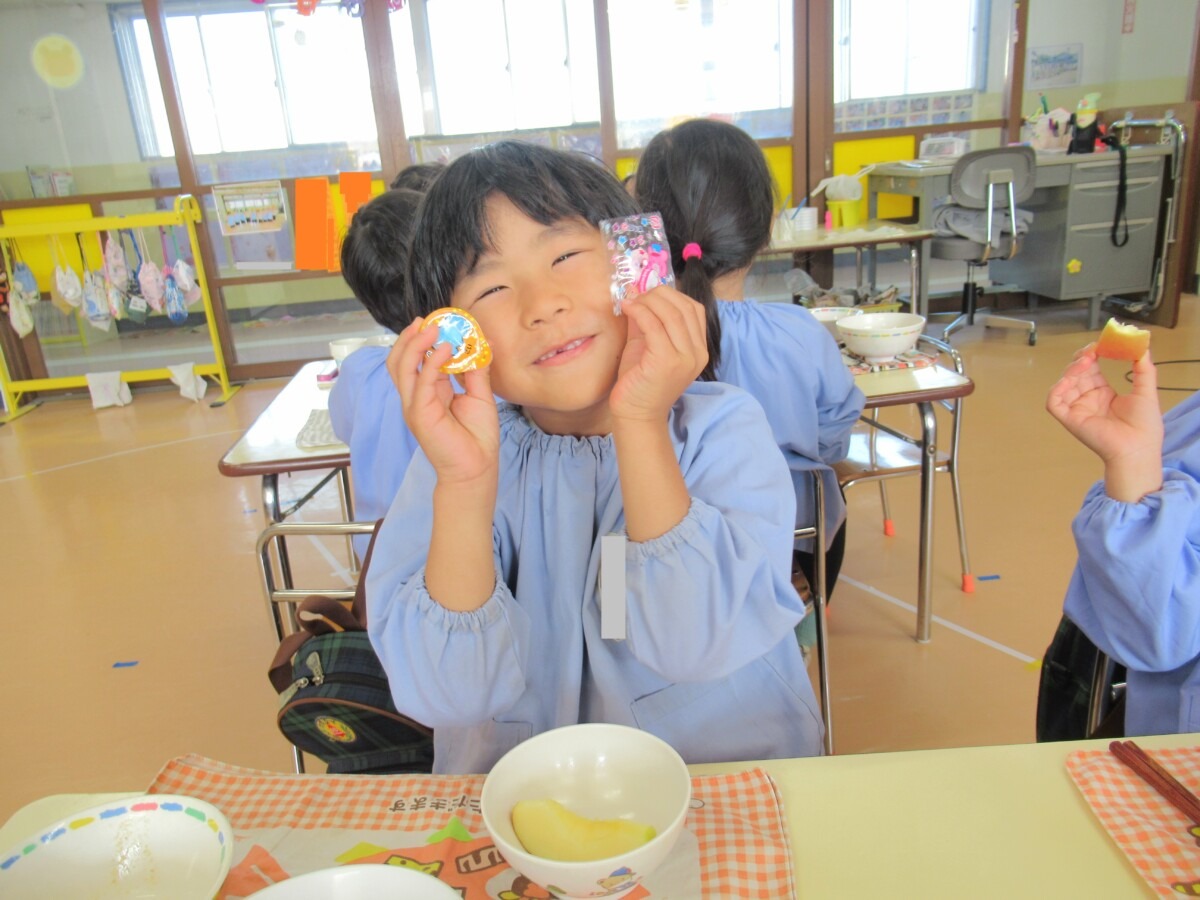 ☆りす組さんは、給食の時間に先生からお菓子をもらっていました🎵