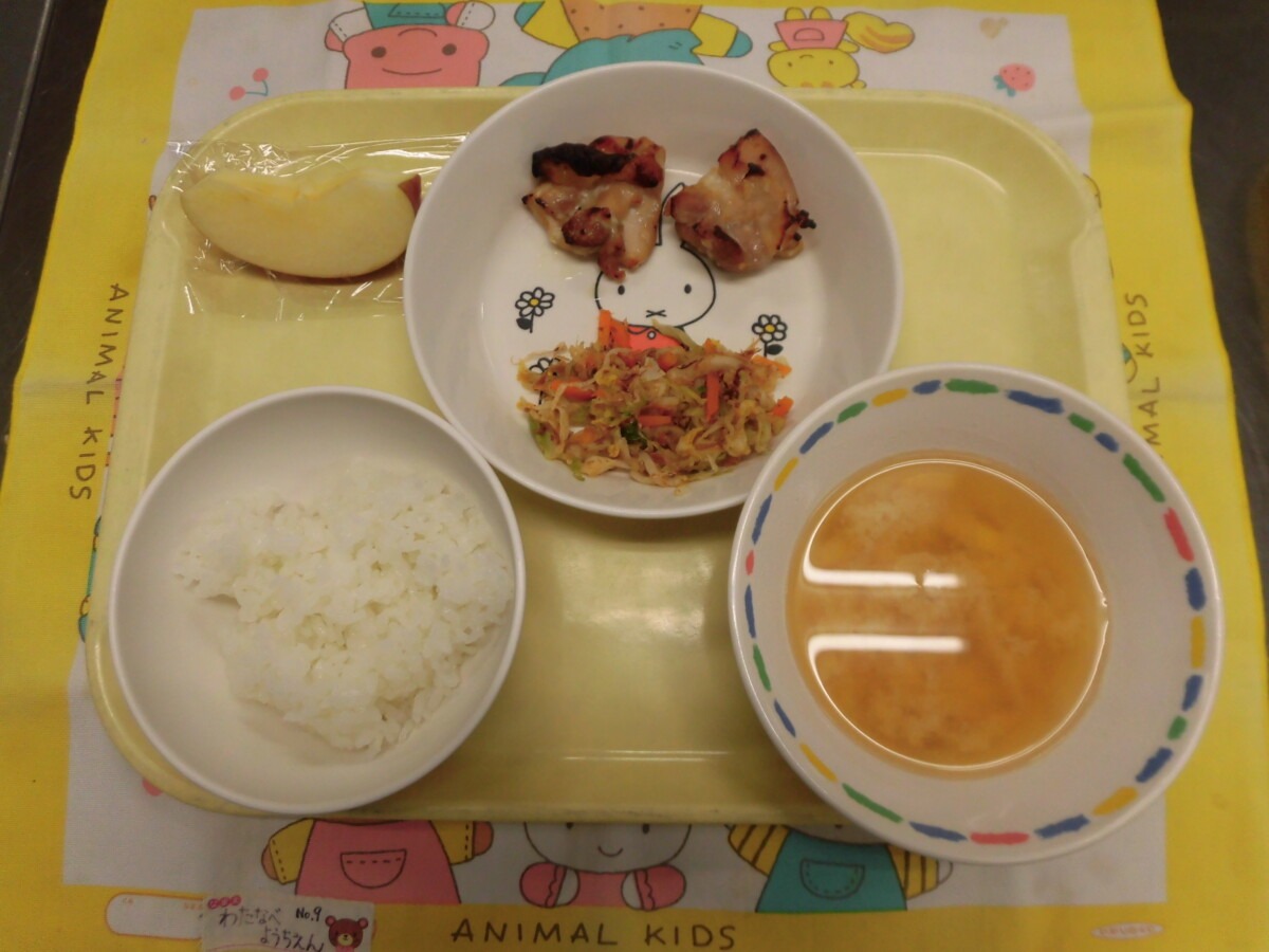 10月30日(木)ご飯・鶏肉の塩こうじ焼き・白菜のおかか和え・高野豆腐の味噌汁・りんご