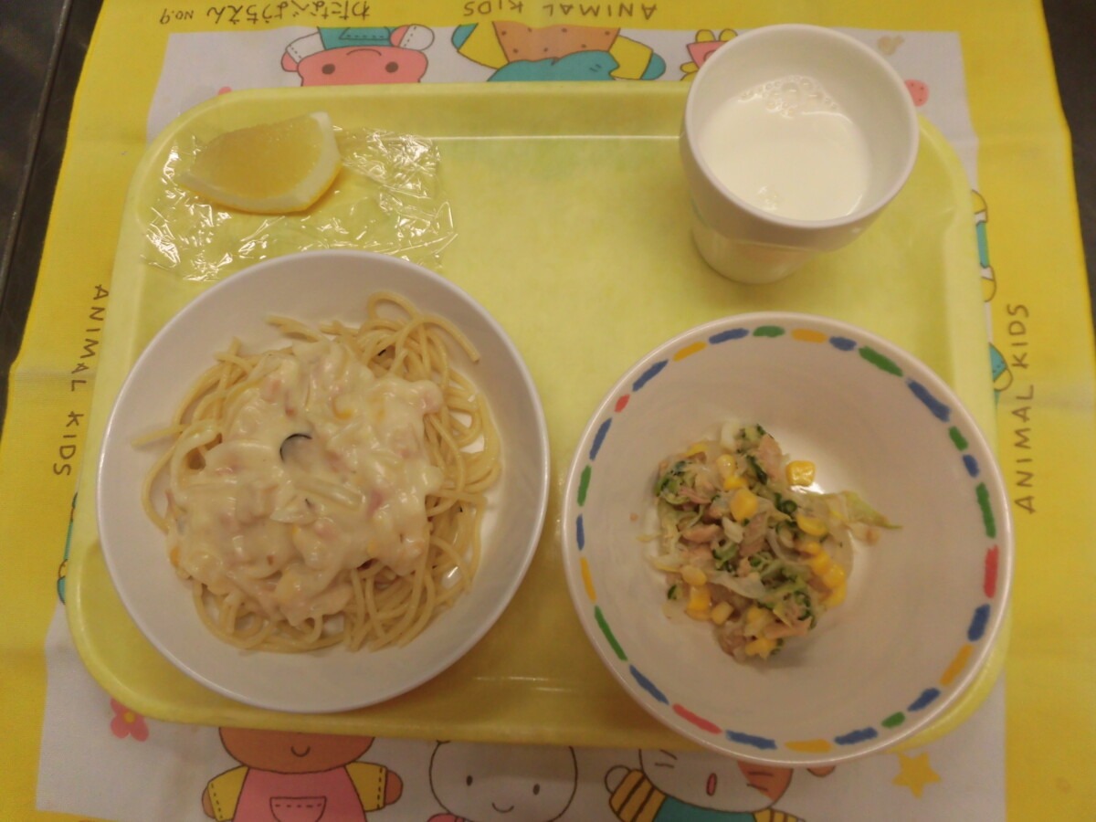 10月30日(金)コーンクリームスパゲティー・白菜のツナサラダ・牛乳・グレープフルーツ