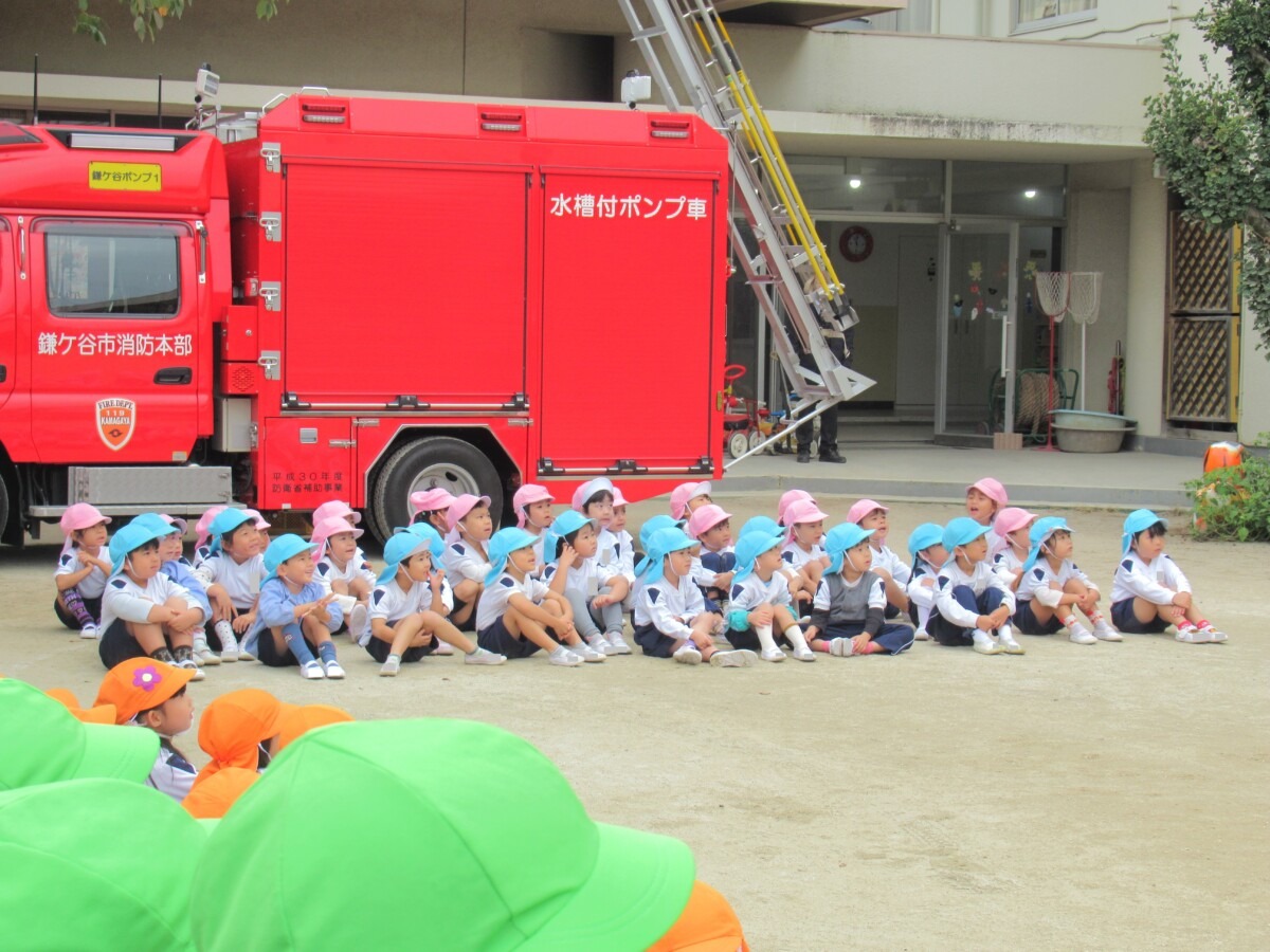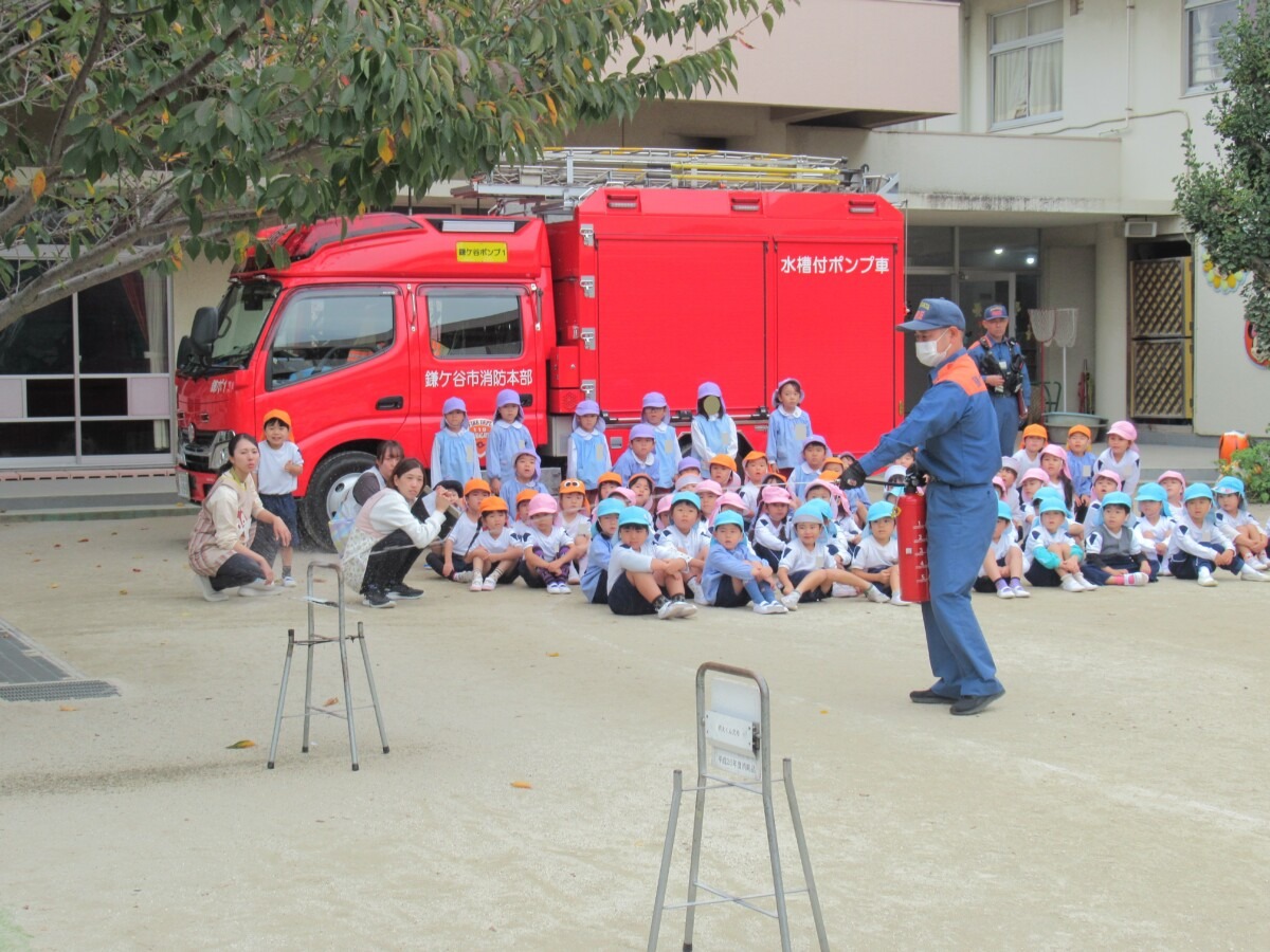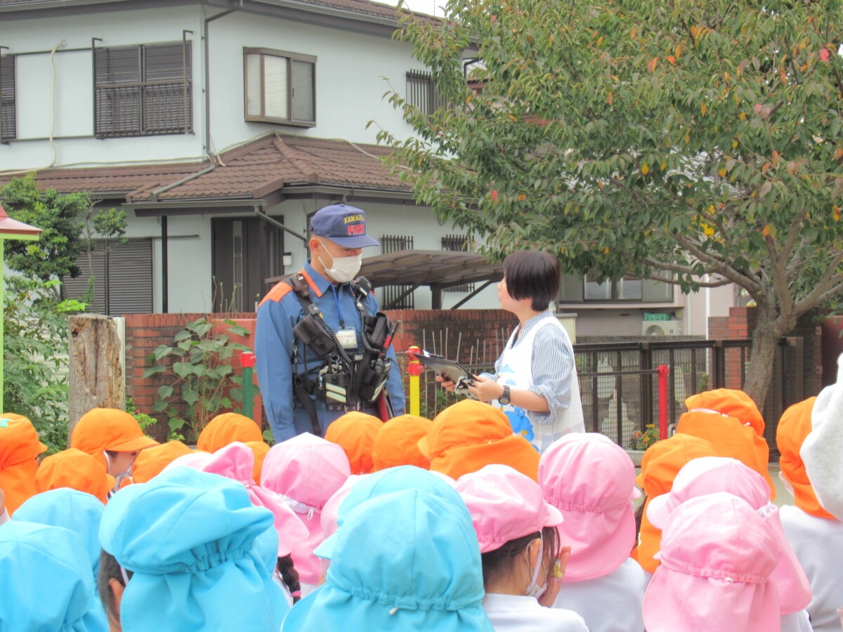 ☆鎌ヶ谷市中央消防署の方に来園していただき、訓練の様子を見て、指導をしていただきました!!