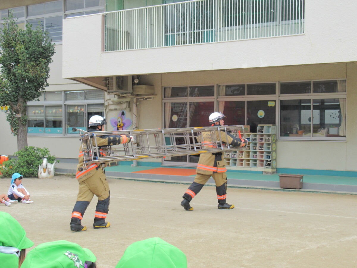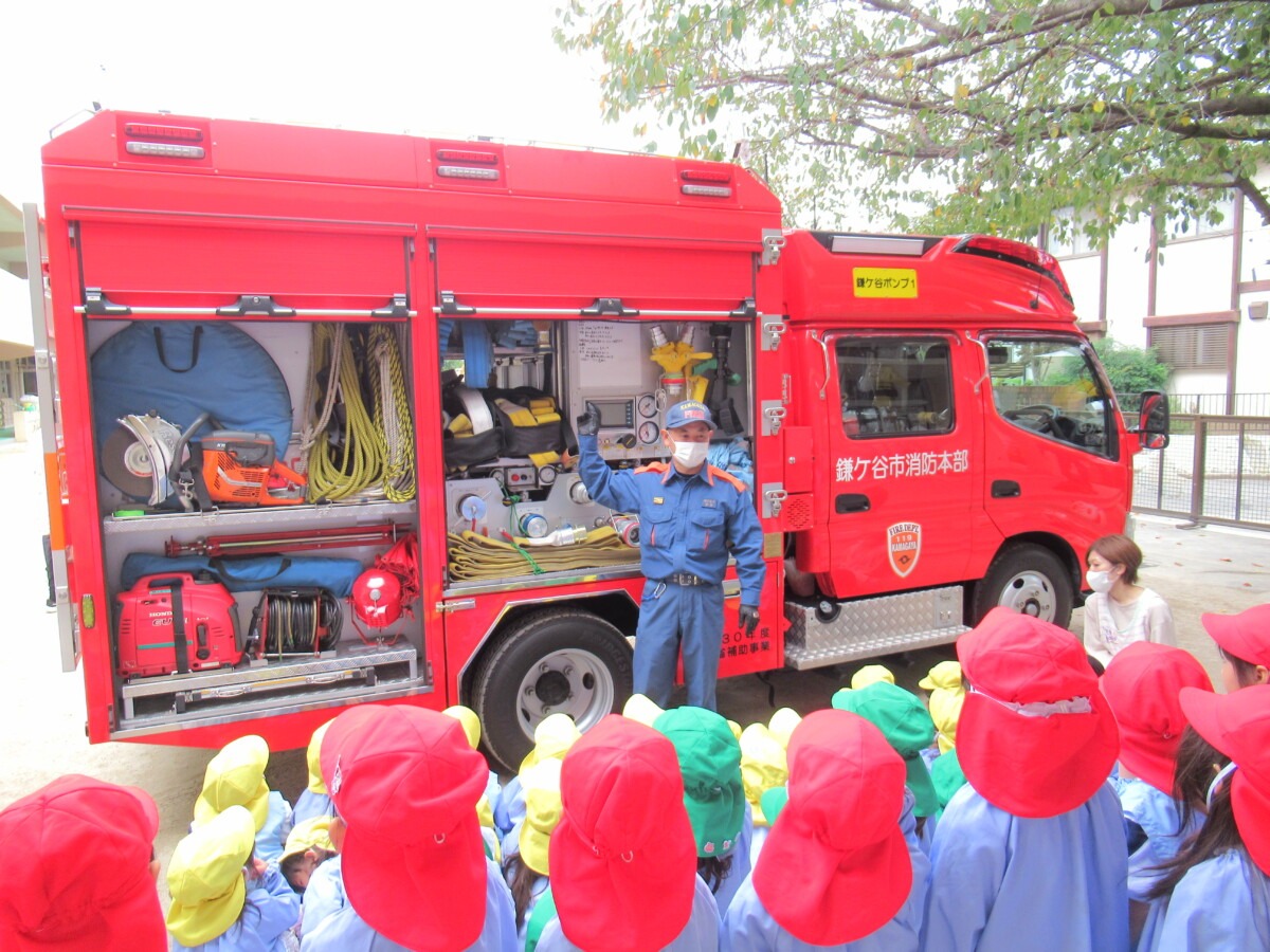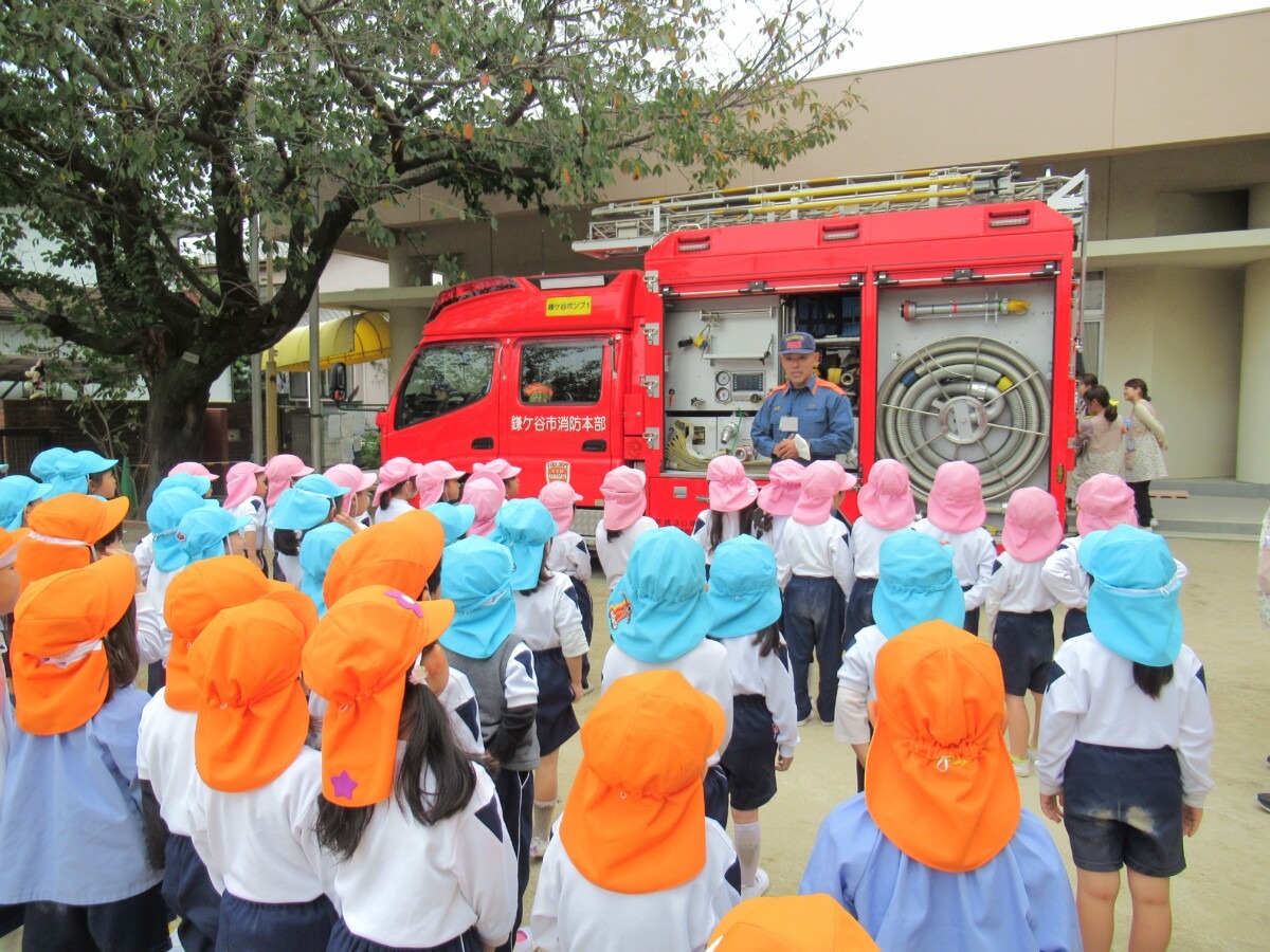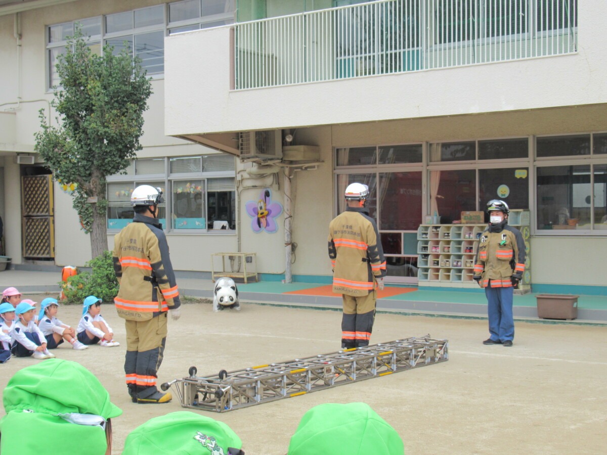 ☆鎌ヶ谷市中央消防署の方に来園していただき、訓練の様子を見て、指導をしていただきました!!