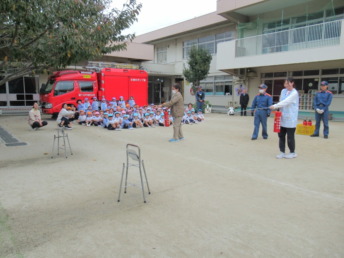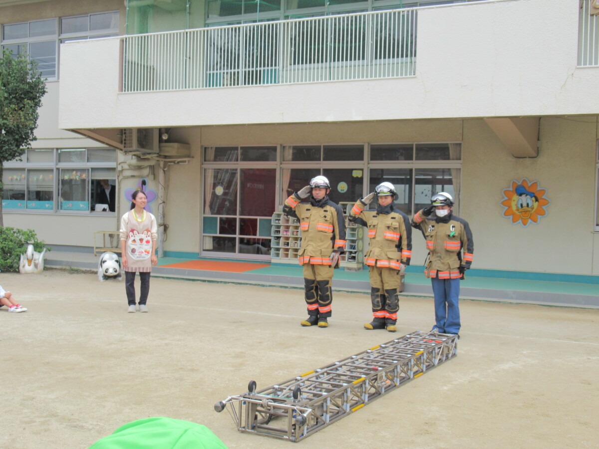 子どもたちが真剣に、そして素早く避難をすることができていて、消防士の方に褒めていただきました✨