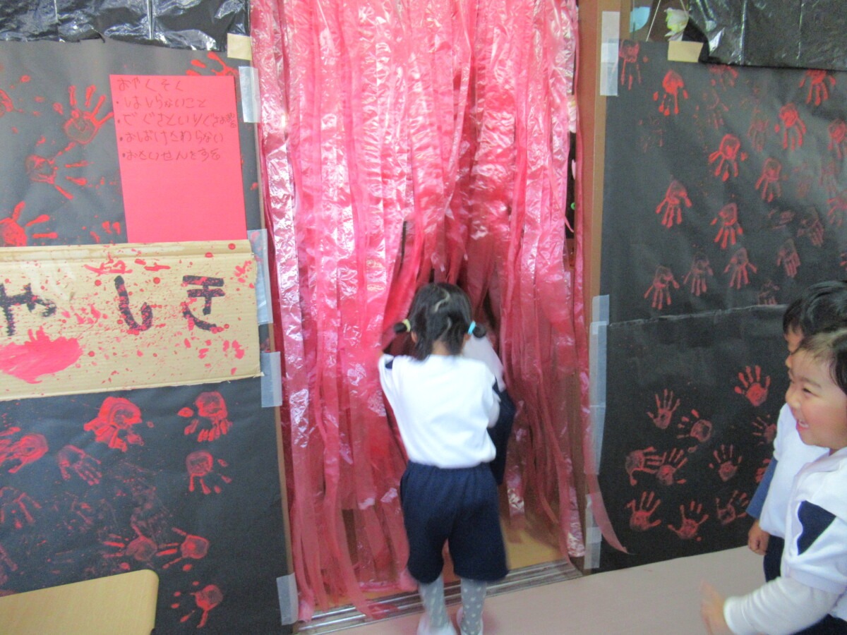 ☆11月7日(金)、ぱんだ組さんの『お化け屋敷』にひよこ1組さんときりん組さんを招待していました👻🎵