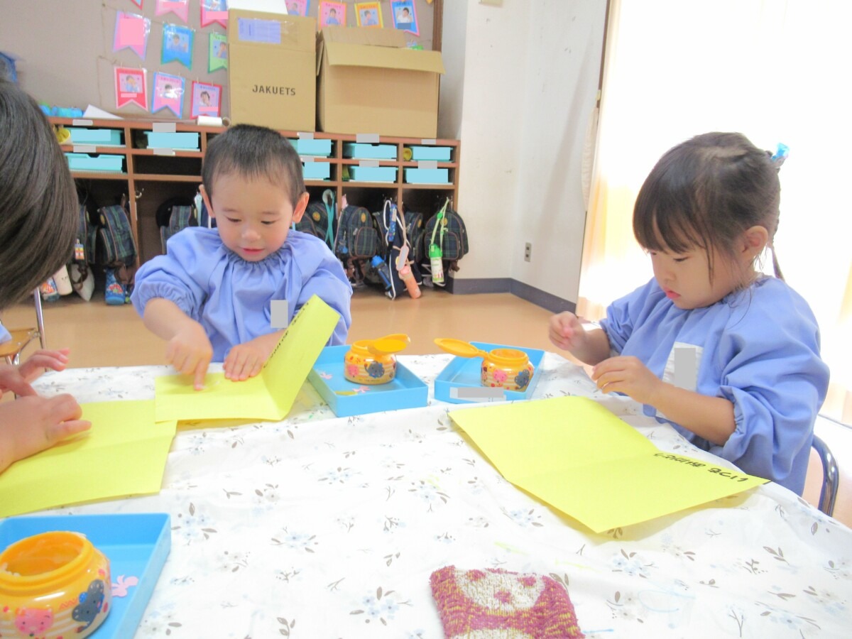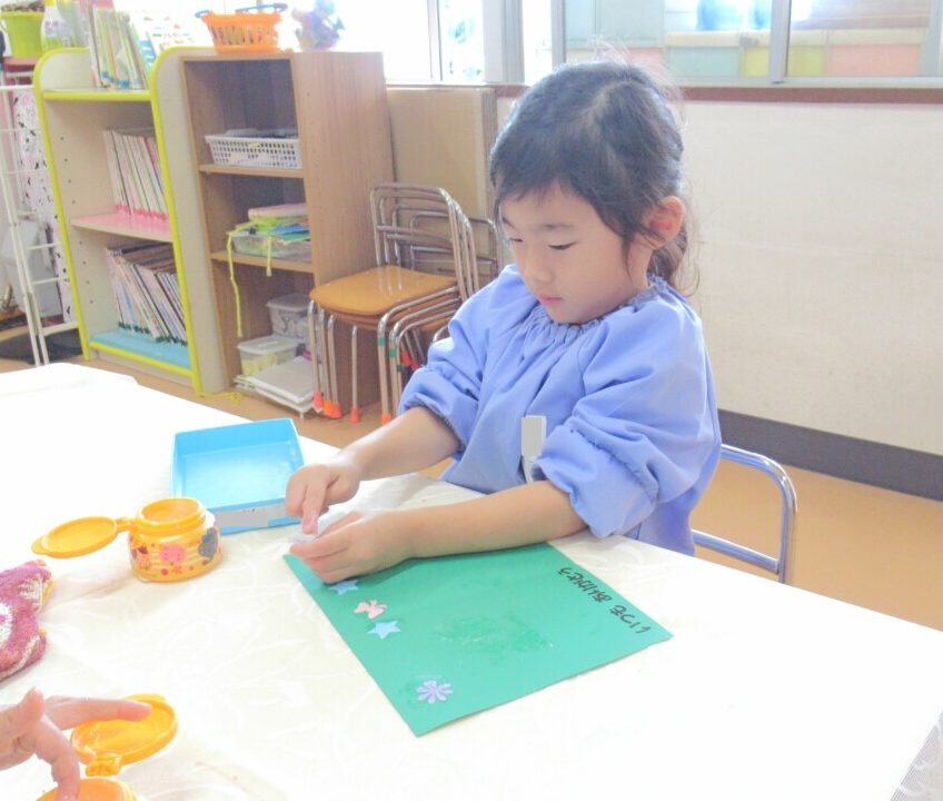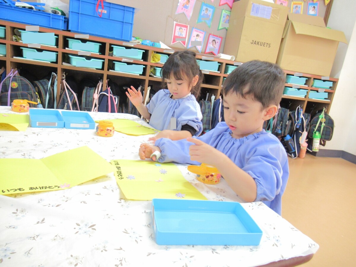 11月16日(日)の子ども家庭庁が「こどもや家庭を社会全体で支える大切さ等について理解を深めてもらうため」に定めた『家族の日』に向けて、年少組さんがおうちの方に感謝の気持ちを込めて手紙の製作に取り組んでいました✨
