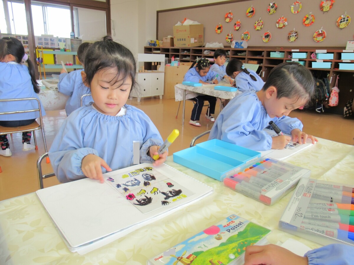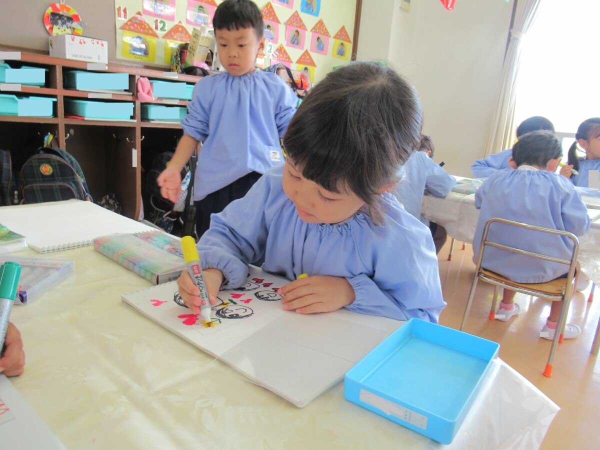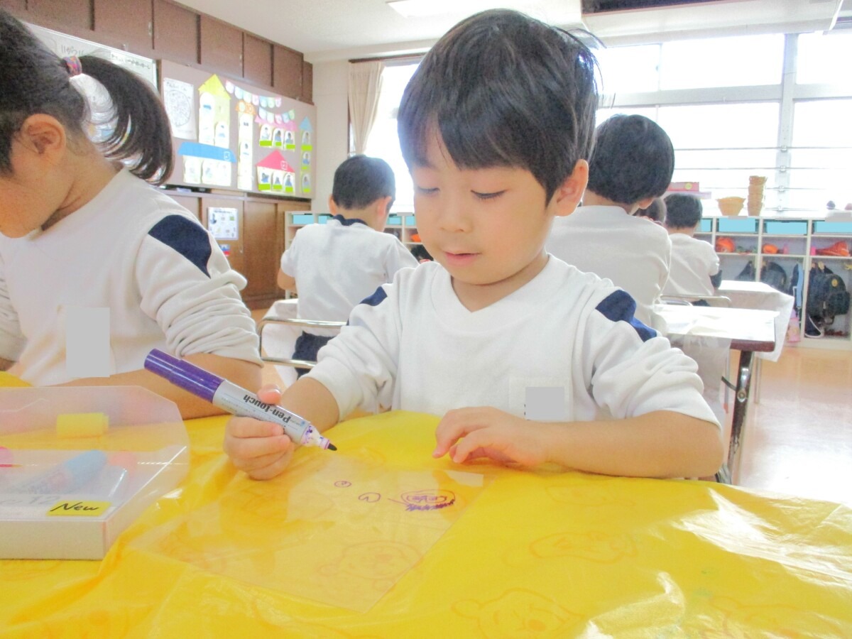 11月16日(日)の子ども家庭庁が「こどもや家庭を社会全体で支える大切さ等について理解を深めてもらうため」に定めた『家族の日』に向けて、おうちの方に感謝の気持ちを込めて、年中組さんがプラバンのプレゼント作りに取り組んでいました!!
