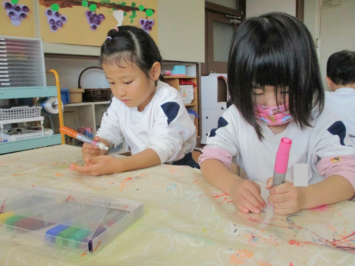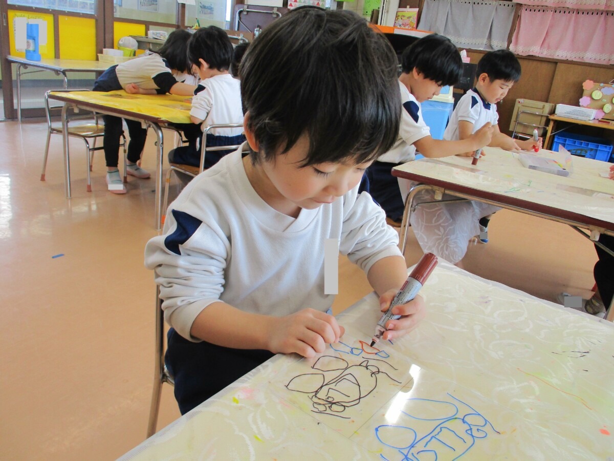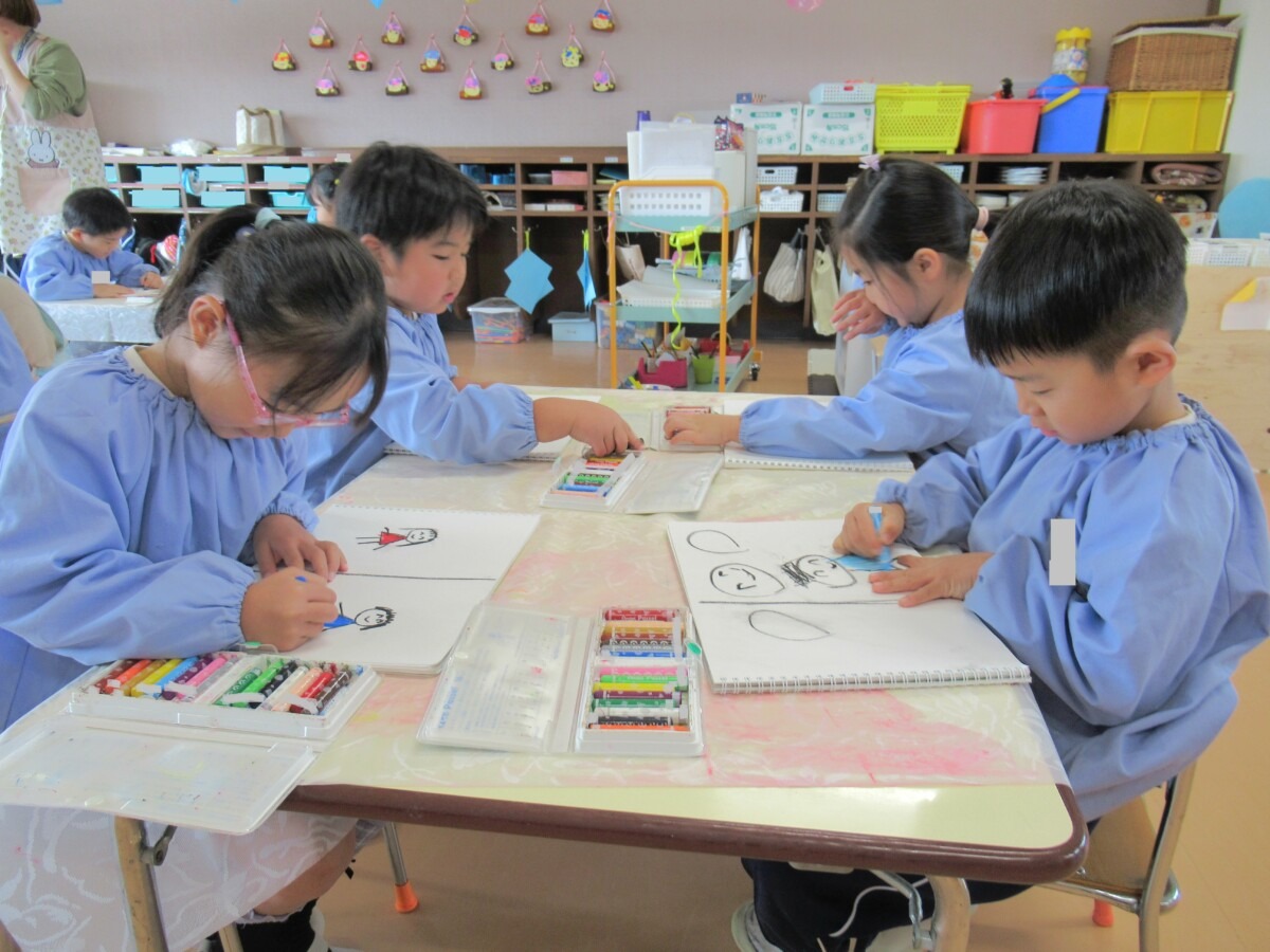 11月16日(日)の子ども家庭庁が「こどもや家庭を社会全体で支える大切さ等について理解を深めてもらうため」に定めた『家族の日』に向けて、おうちの方に感謝の気持ちを込めて、年中組さんがプラバンのプレゼント作りに取り組んでいました!!