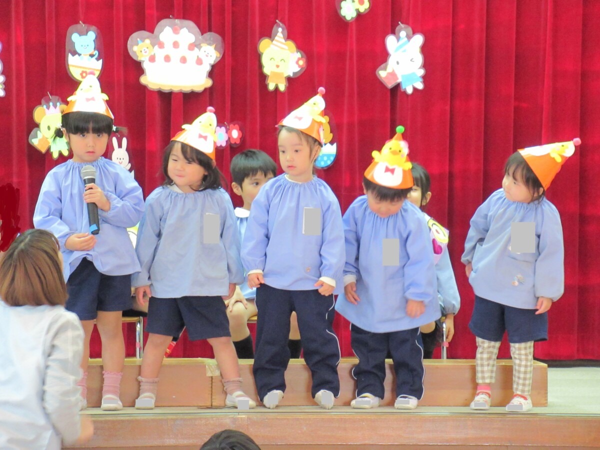 ☆お誕生日のお友だちが舞台にあがり、一人ひとりクラスと名前を発表しました!!