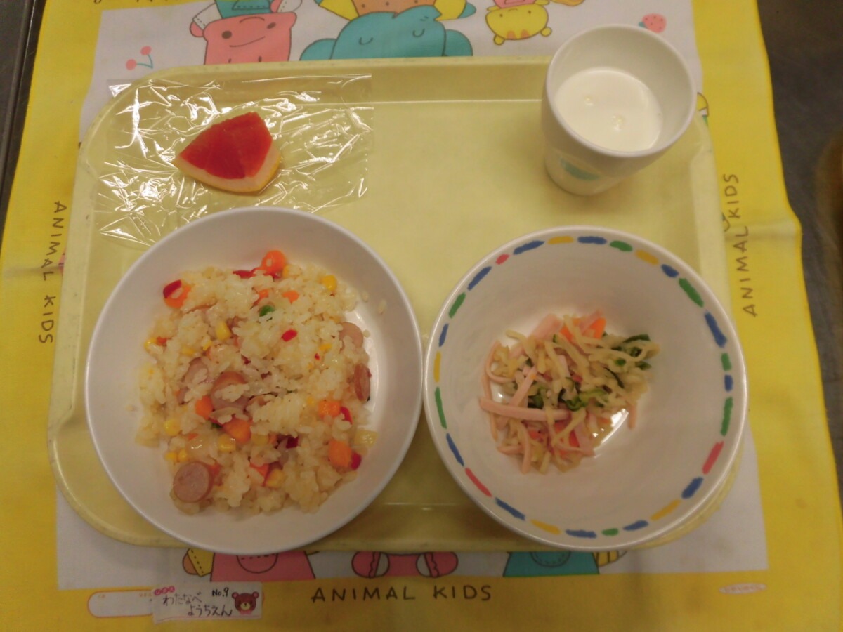 11月10日(月)ウインナーと野菜のピラフ・切干大根のピラフ・牛乳・グレープフルーツ