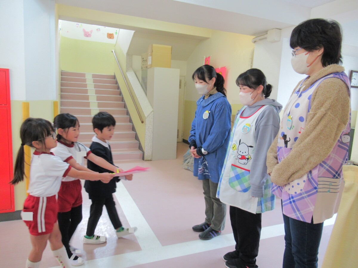 ホーム > 保育 > 11月20日(木) 年長組さん勤労感謝の日の手紙☆ 2025/11/20 11月20日(木)に、以前書いた勤労感謝の日の手紙を、幼稚園の先生たちに渡していました✨ ☆『いつもありがとう😊✨』という感謝の気持ちを込めて書いた手紙を、素敵な言葉を添えて渡していました💛 - 保育