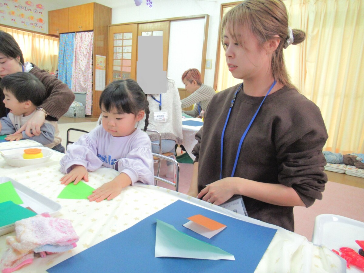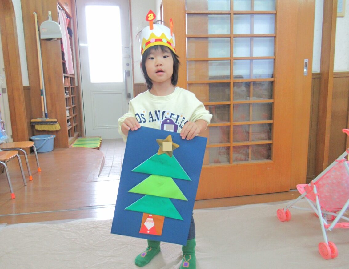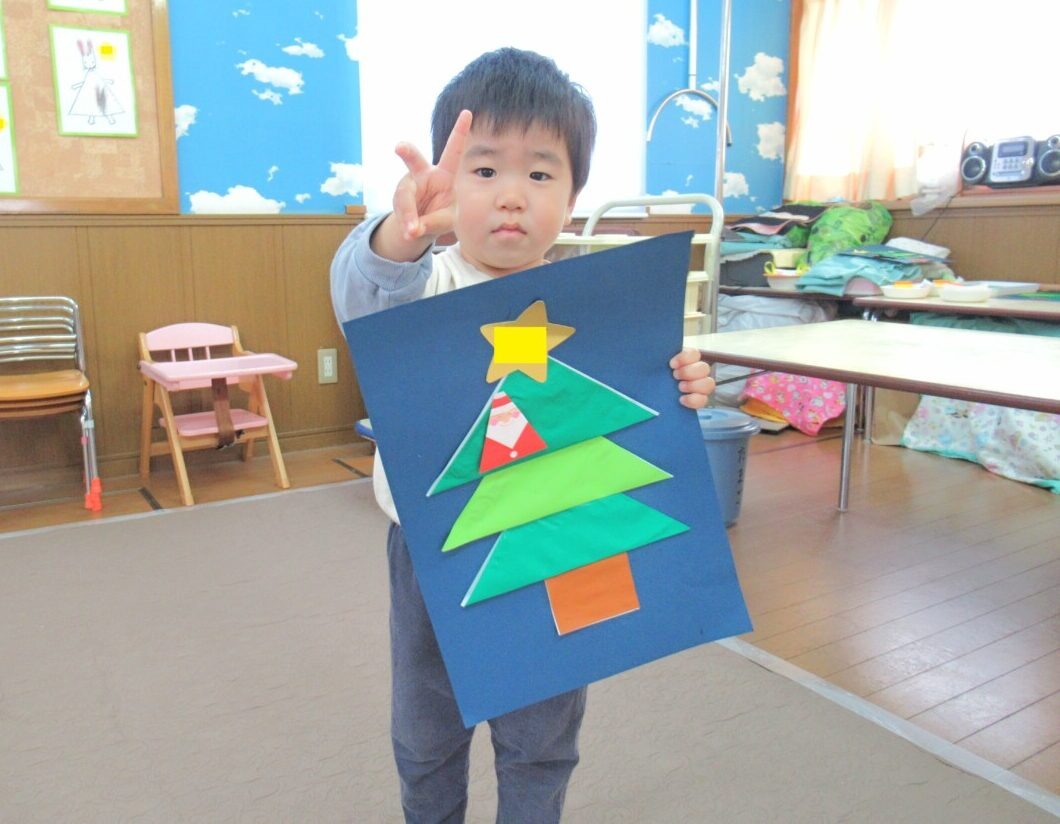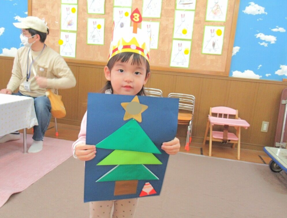 次回は、はじめてのはさみを使った製作で、今回取り組んだ折紙のクリスマスツリーに飾りをつけたいと思います🎄!!