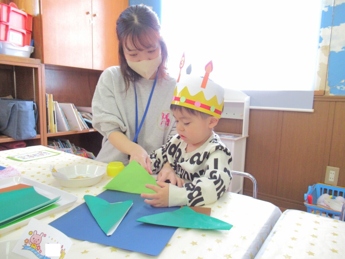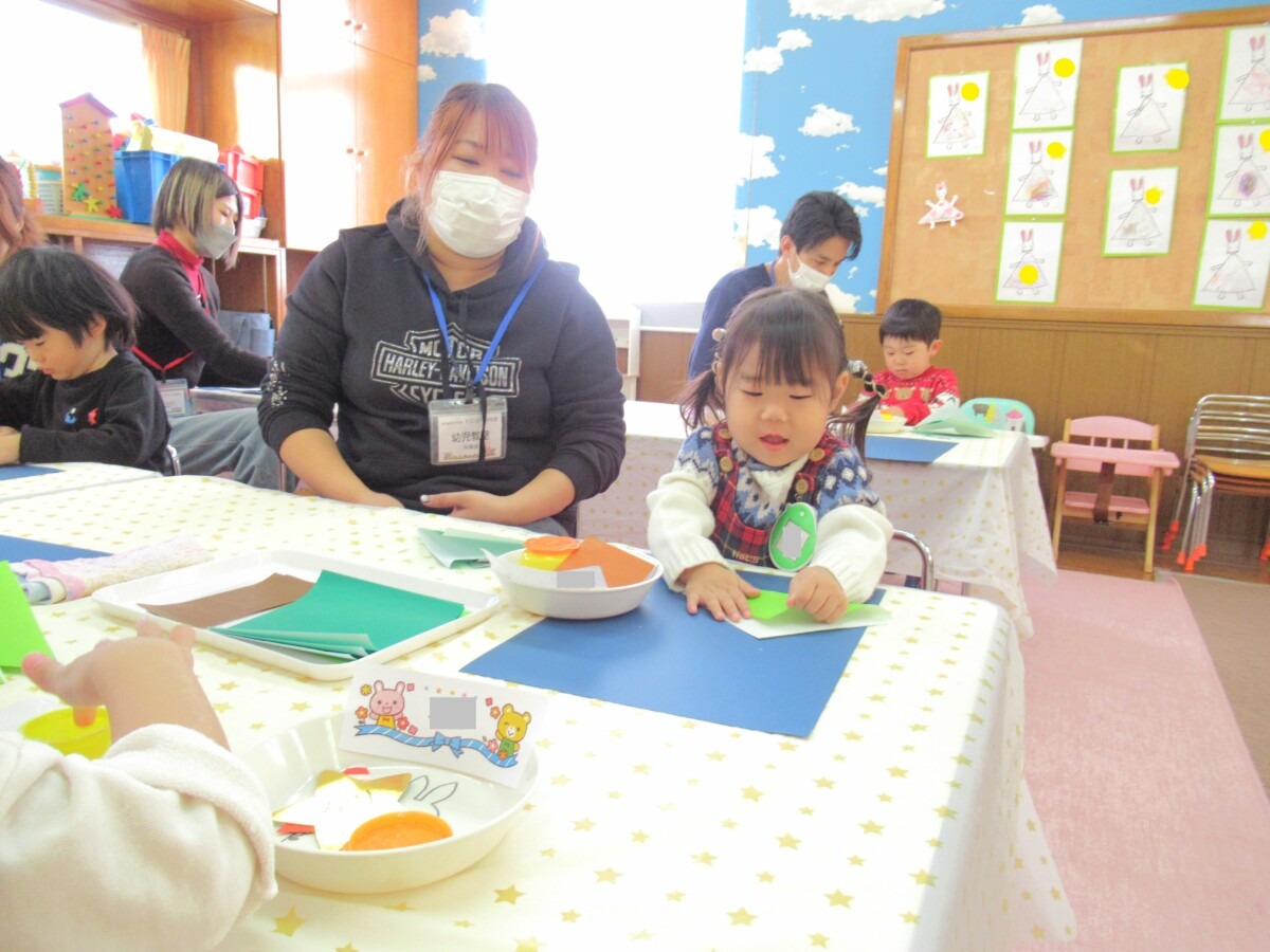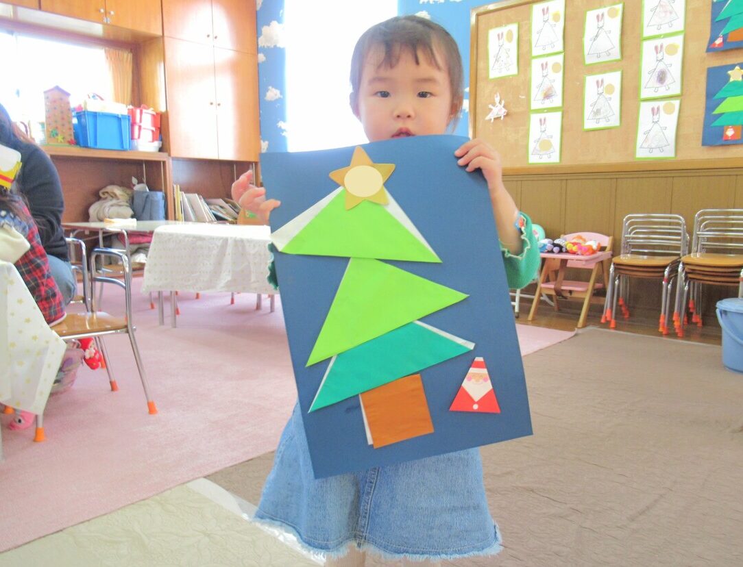 次回は、はじめてのはさみを使った製作で、今回取り組んだ折紙のクリスマスツリーに飾りをつけたいと思います🎄!!
