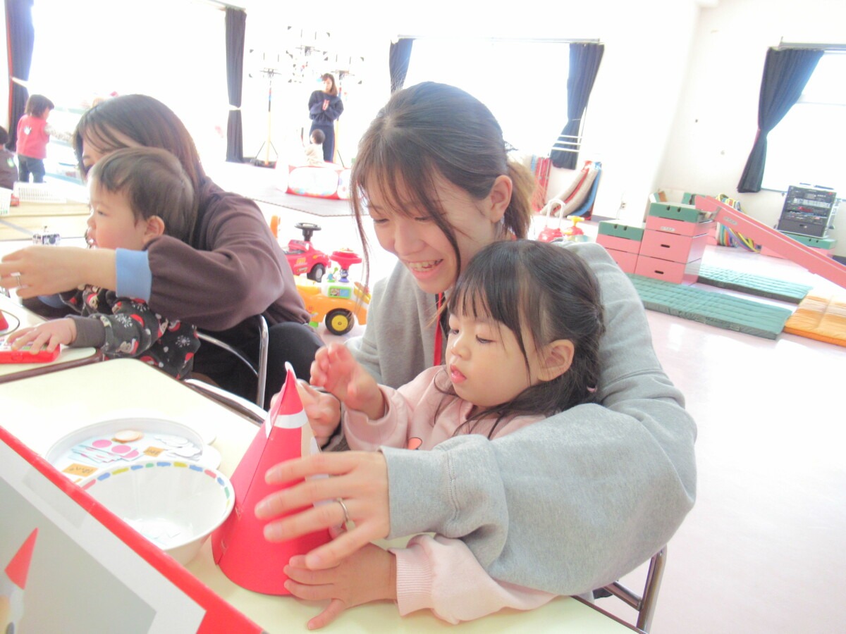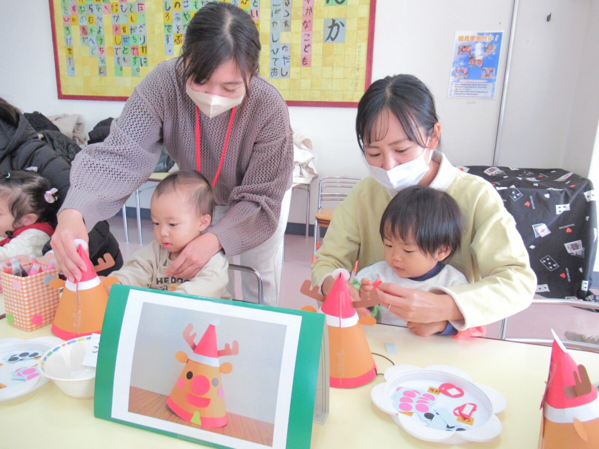 ☆今回のこあらルームでは、サンタさんとトナカイの帽子作りの企画があり、作りたいというお友だちが、おうちの方と一緒に帽子の製作に取り組んでいました🎄✨