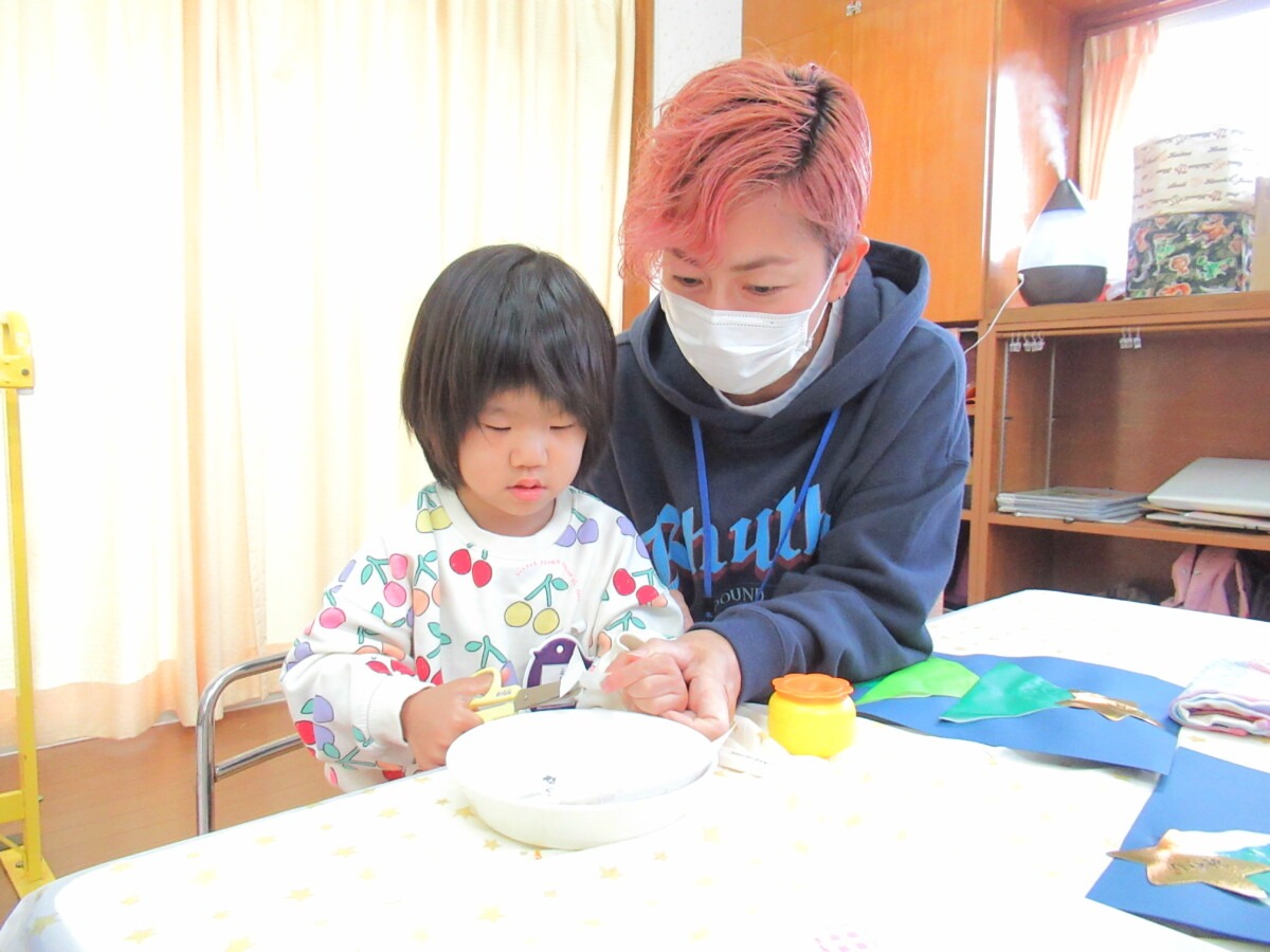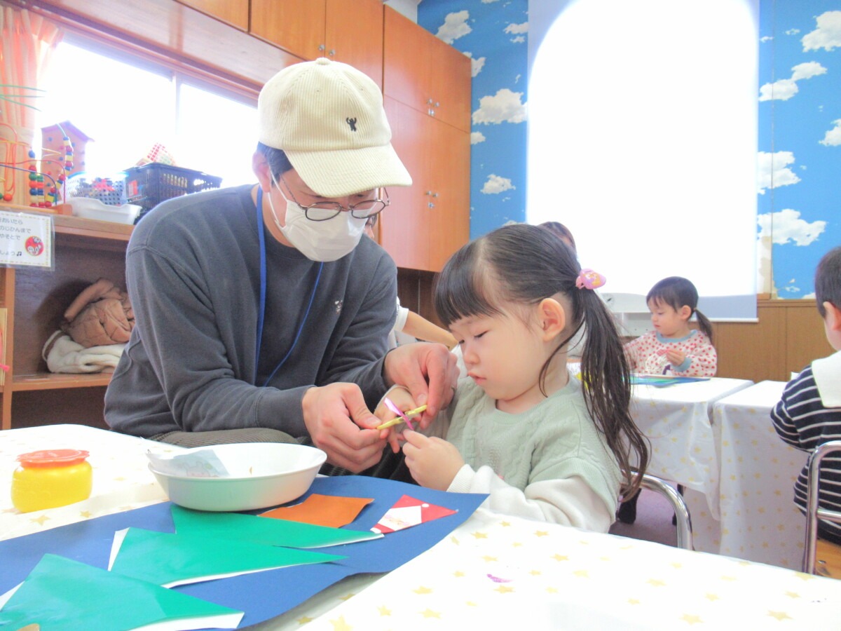 はじめてはさみを使う活動だったので、先生と使い方の確認、約束をしてから取り組みました😊!!