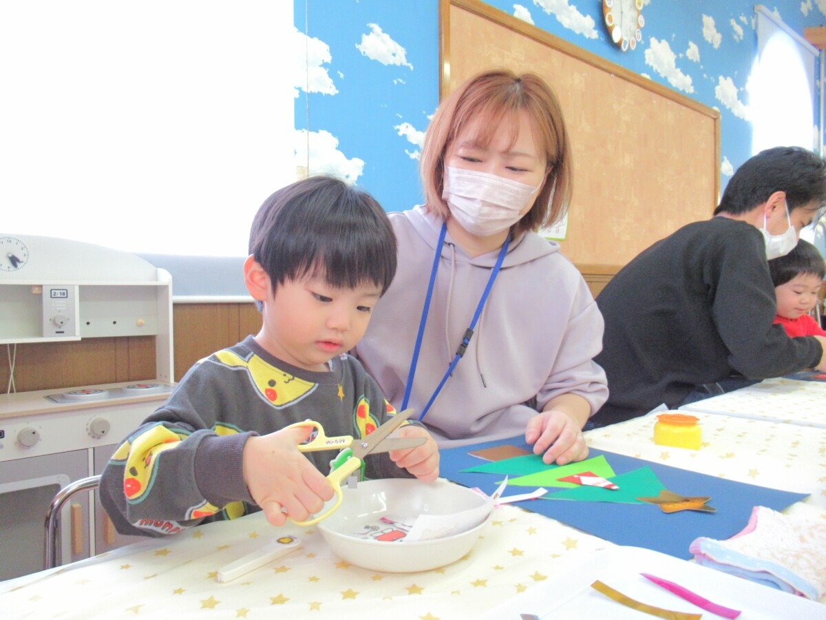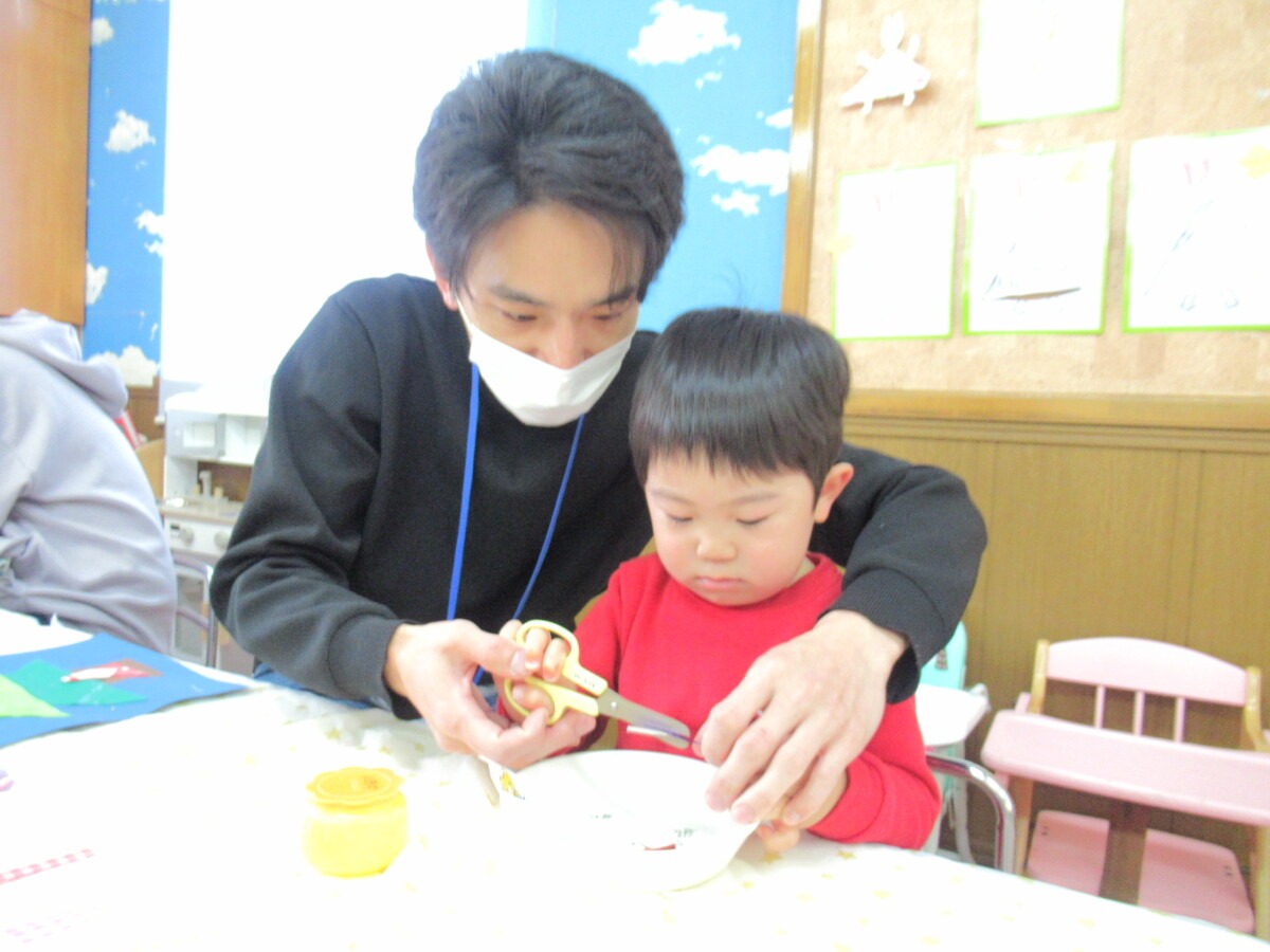 はじめてはさみを使う活動だったので、先生と使い方の確認、約束をしてから取り組みました😊!!
