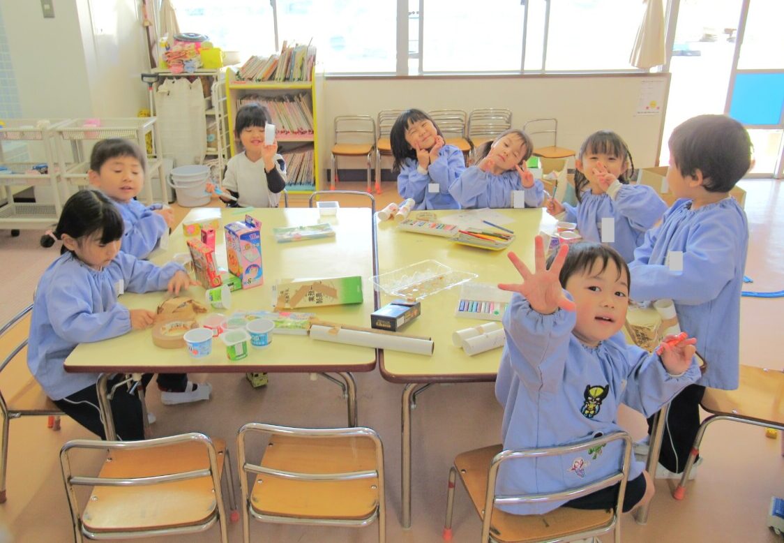 ☆ひよこ1組さんが、自由あそびの時間に空き箱製作を楽しんでいました😊✨