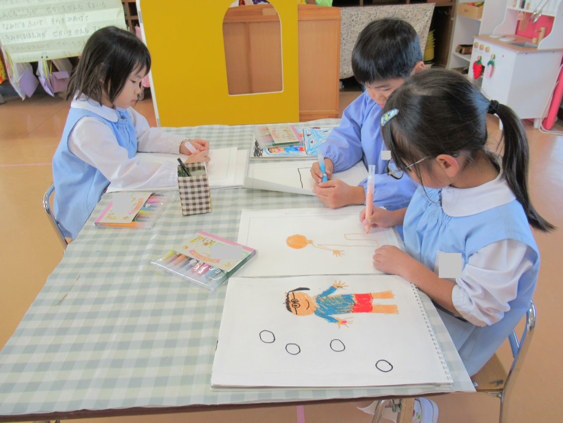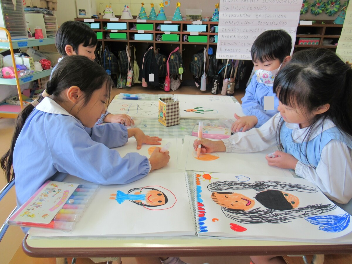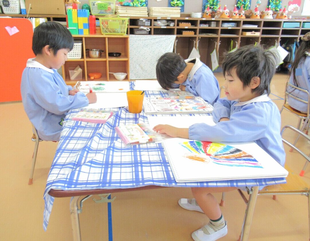 ☆年長組さんは、卒園アルバムの表紙になる絵を描いていました✨