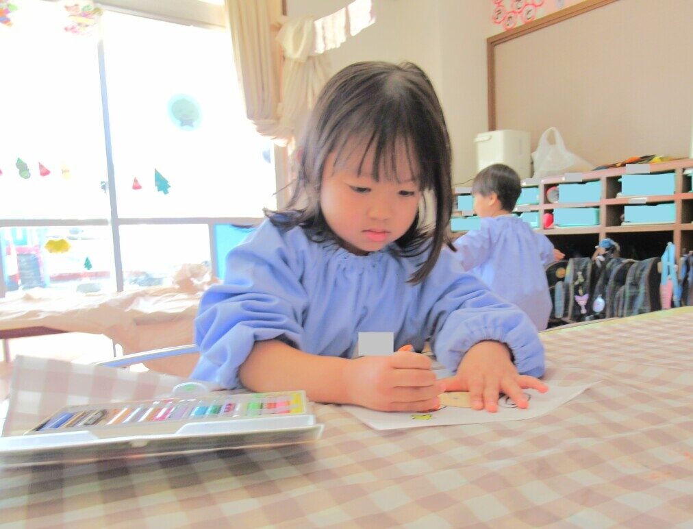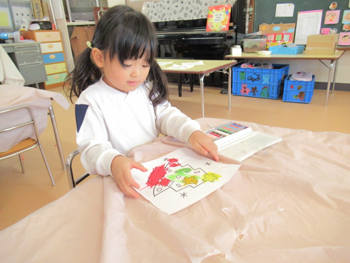 ☆ひよこ1組さんは、明日のクリスマス会に向けて、クリスマスの絵柄の色塗りを楽しんでいました🎄✨