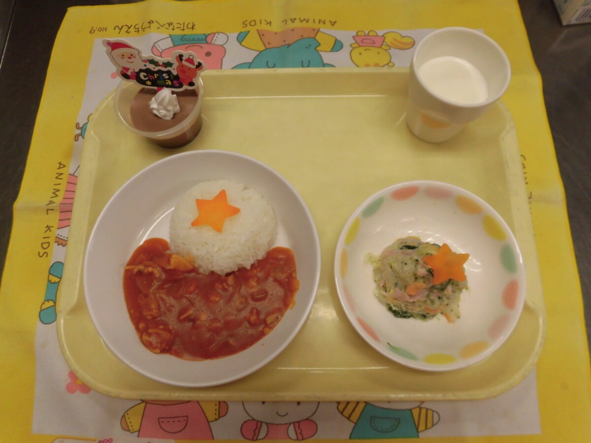 12月16日(火)ハヤシライス・ポテトサラダ・牛乳・クリスマスデザート