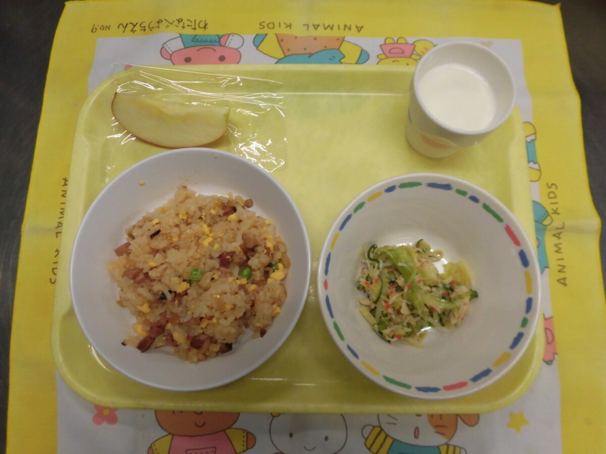 12月17日(水)チャーハン・ささ身の中華サラダ・牛乳・りんご