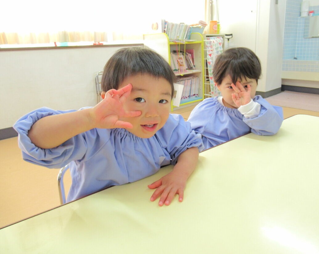 ☆連休明けで、登園するときにおうちの人に会いたいと少し寂しそうな様子の子もいましたが、朝の自由あそびでお友だちや先生とたくさんあそび、にこにこの笑顔が見られました😊✨